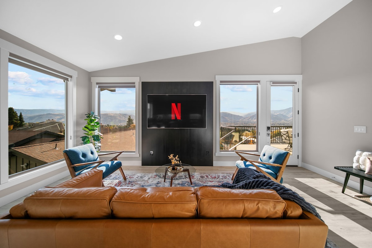 Distrează-te cu întreaga familie, animalele de companie sunt binevenite, în această escapadă elegantă. Situat la 15 minute de centrul orașului Ellensburg. Această fermă recent renovată este situată convenabil în inima văii, care oferă priveliști uluitoare ale terenurilor agricole pe scară largă și ale munților în cascadă. Loc de parcare privat cu mult spațiu pentru transporturi de jucării sau remorci de cai. Amplasat pe 8 hectare, cu un gard privat în curte. Cadă cu hidromasaj mare pentru întregul grup, alături de o zonă de luat masa și de relaxare în aer liber.