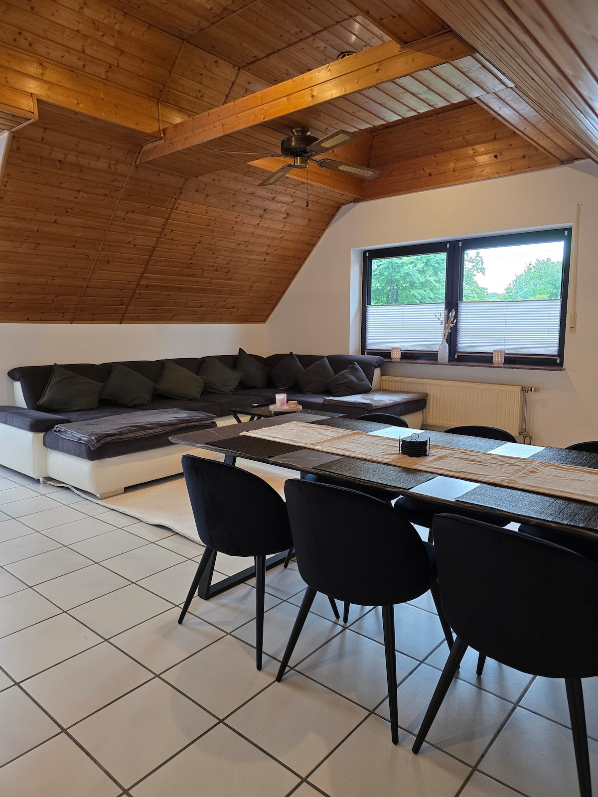 Apartament modern la mansardă (120 m²) pentru până la 7 persoane Bine ai venit în apartamentul nostru spațios, cu aer condiționat, la mansardă, cu intrare separată, la numai aproximativ 50 de metri de pădurea orașului Wassenberg. Perfect pentru familii sau grupuri care caută pace, dar totuși doresc să ajungă rapid în oraș.