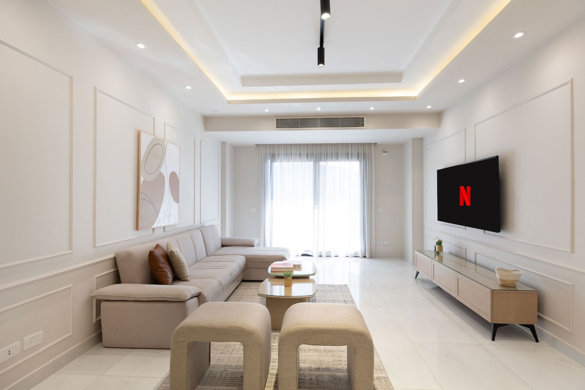 🌿 Bine ai venit la evadarea ta modernă însorită din New Cairo, lângă Concord Plaza și South Teseen Indiferent dacă vizitezi pentru o vacanță scurtă, o ședere în familie sau o călătorie de afaceri, acest spațiu oferă combinația perfectă de confort, stil și comoditate. Situat într-una dintre zonele sigure și bine conectate din New Cairo, te vei bucura de o casă luminoasă, minimalistă, cu o terasă confortabilă, plus cafenele, mall-uri și drumuri principale la doar câțiva pași. Este baza ideală pentru explorarea orașului, bucurându-te în același timp de un refugiu liniștit aproape de aeroport.