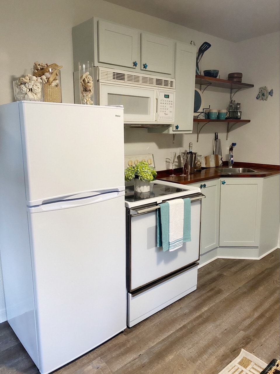 This is a lovely , secluded 3 bedroom 2.5 bath home that is only 0.4miles from the beach. It has a living room and sitting area with a large table for eating or playing games. The home is located behind the house shown and includes all that is pictured. The house is shown so one can locate us. They are separate spaces. It has its own separate entrance .There is an outside area for sitting and relaxing. It is child friendly not child proof, there are stairs and cabinets without locks.