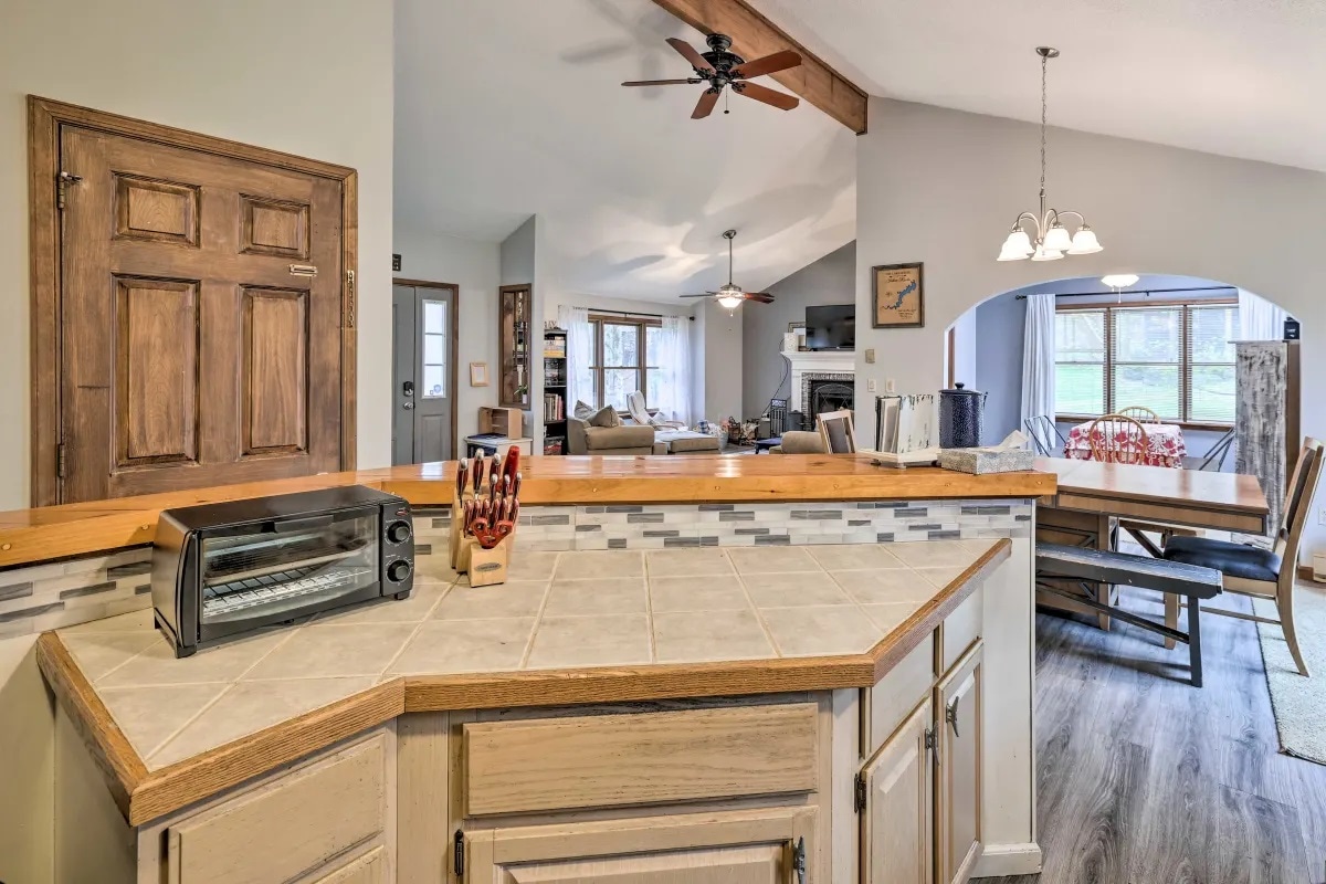 Bine ai venit într-o escapadă de vis, o locuință modernă și liniștită, cu 3 dormitoare, aflată la mai puțin de 1,6 km de râul Delaware! Construită în 2023 și amplasată pe peste 10 acri de peisaj rural curat, oferind liniște, calm și intimitate. Acest refugiu excepțional combină perfect farmecul rustic cu luxul contemporan, garantând un sejur de neuitat. Locuința are 3 dormitoare mobilate, în care pot dormi până la 7 persoane (3 paturi matrimoniale queen-size, 1 cu pat extensibil), plus o cameră de divertisment spațioasă, accesibilă direct din bucătărie, ideală pentru găzduire.
