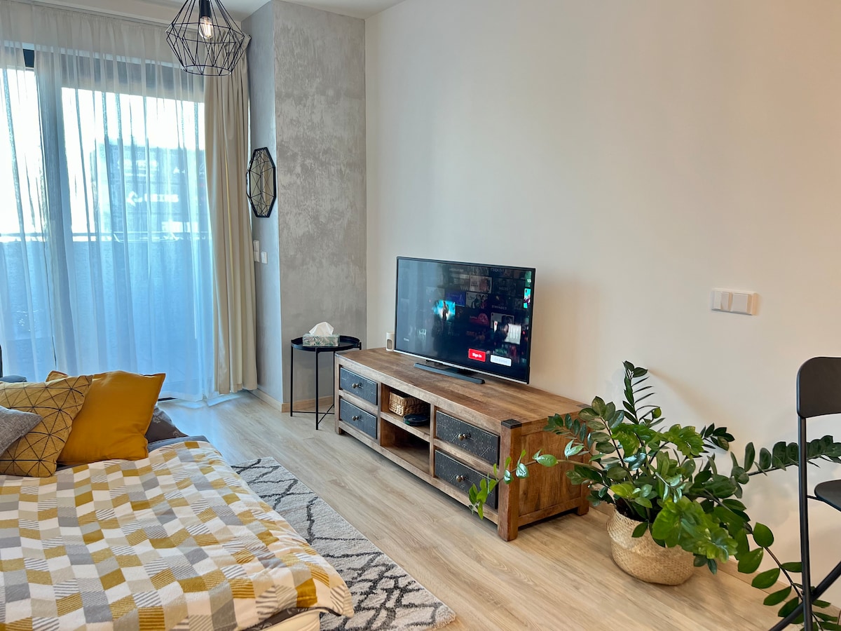 Descarcă-ți picioarele și relaxează-te în acest spațiu liniștit și elegant. Un apartament complet mobilat îți oferă tot ce îți trebuie. În bucătăria complet utilată, îți poți pregăti confortabil cafeaua de dimineață sau micul dejun preferat, de care te vei bucura pe terasa spațioasă cu o priveliște frumoasă. Te poți relaxa după muncă sau după o lungă călătorie urmărind seria ta preferată în sufrageria confortabilă. Desigur, există parcare privată gratuită într-un spațiu dedicat chiar în fața clădirii de apartamente.