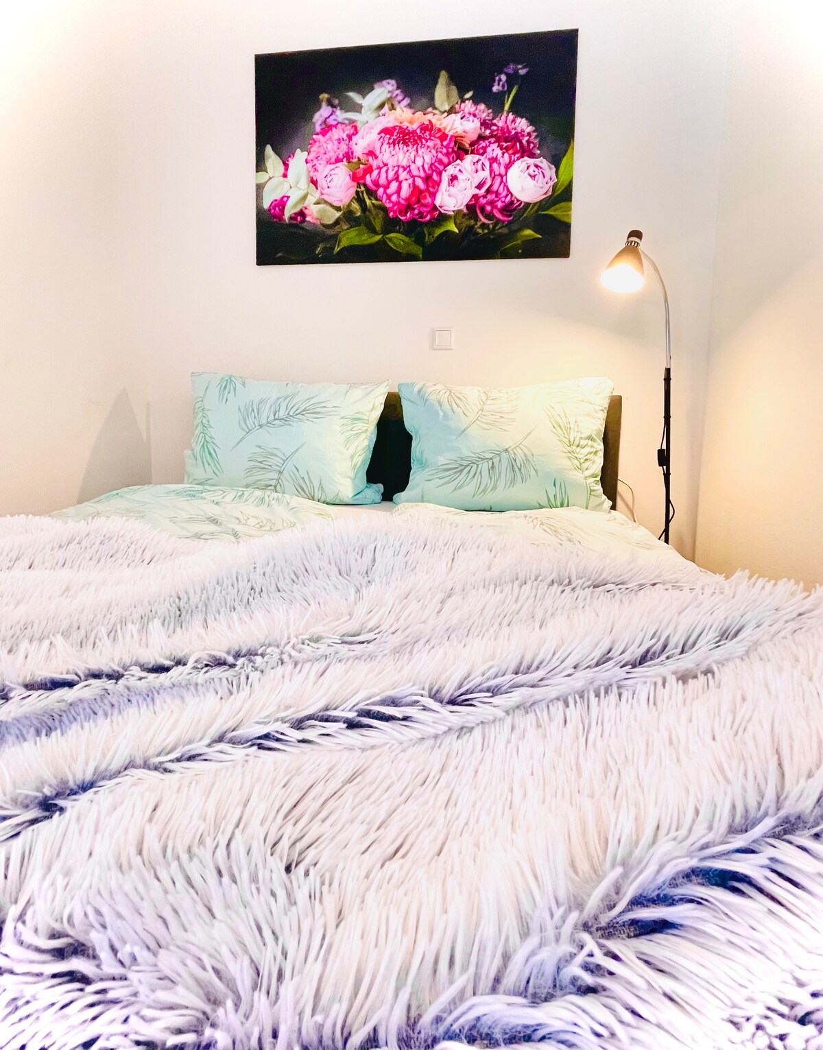 Our freshly renovated 50 sqm flat in Dinkelscherben offers modern comfort for families, couples, business travelers, and nature lovers. It features a bedroom, bathroom, hallway, and living area, plus coffee machine, kettle, microwave, projector, hairdryer, iron and Wi-Fi. Sleeps up to 5, baby cot on request, pets welcome. Blackout curtains, insect screens, and a 15-minute walk to the train station. Our home is cozy and welcoming – just as it was designed for families with children and pets.