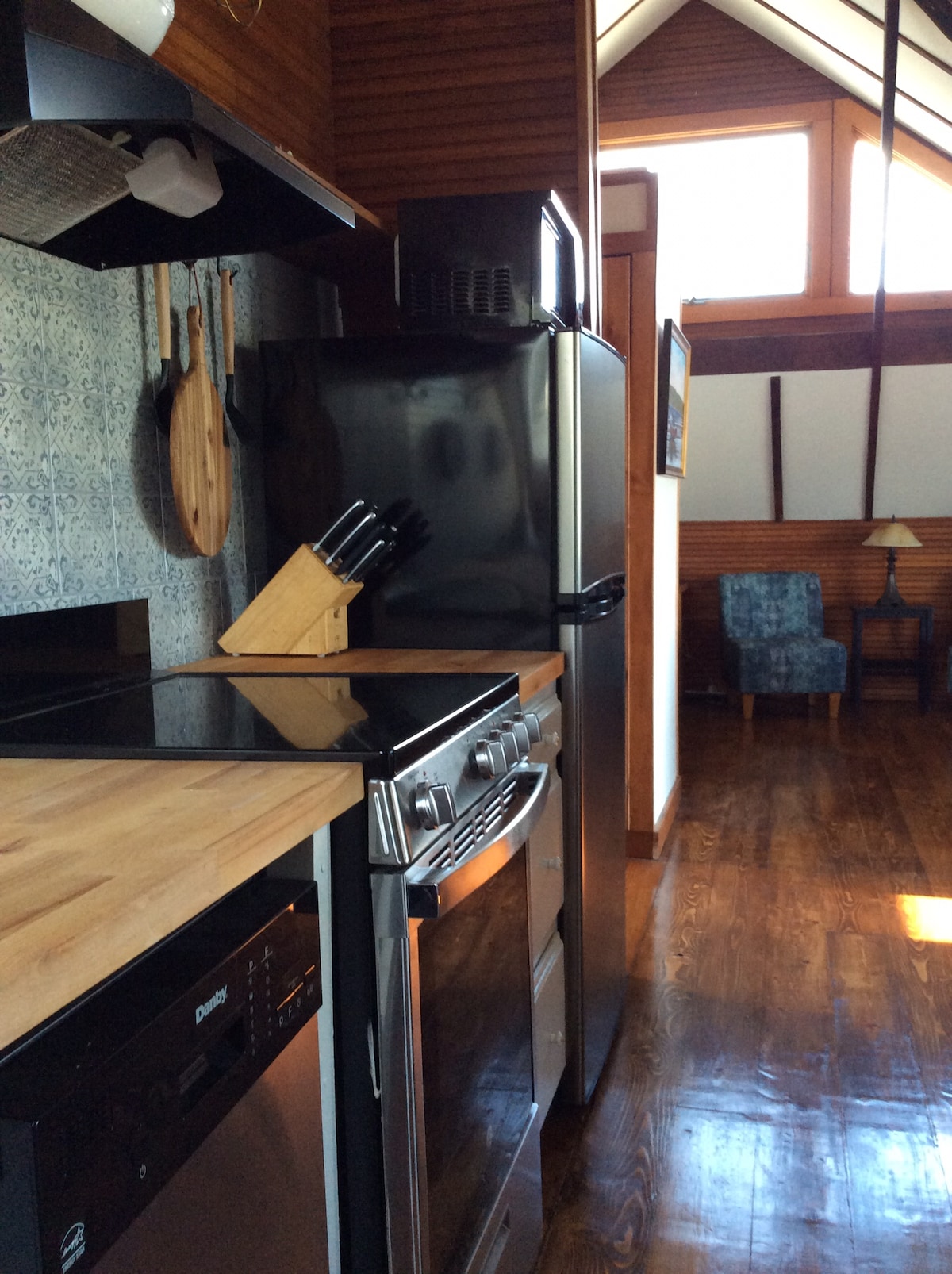 Bucătărie deschisă + living + sufragerie, cu tavan înclinat din lemn și două glisoare cu vedere la terasă, curte +mlaștină. Bucătărie funcțională cu chiuvetă de la fermă, DW, articole esențiale pentru gătit și cămară. Două dormitoare confortabile cu aer condiționat pentru ferestre, saltele noi și perdele opace. Baie cu cadă/duș + o mulțime de prosoape pentru plajă sau casă. Dușul în aer liber este excelent în lunile mai calde! Bucură-te de acest loc liniștit, ascuns, cu o mulțime de trasee de mers pe jos și priveliști frumoase ale apusului de soare chiar pe drum.