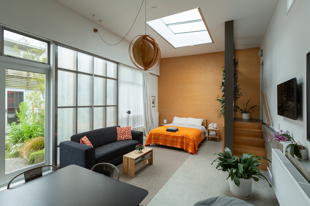 Situat central, acest studio cald și însorit se află la mică distanță de mers pe jos de cele mai bune lucruri pe care orașul le are de oferit și la o scurtă plimbare cu mașina până la aeroport și feriboturi. Sunt arhitect și am proiectat inițial studioul ca spațiu de lucru în partea din spate a casei noastre pentru soțul meu fotograf, Ian. Am transformat-o recent într-o locuință autonomă, astfel încât să putem împărtăși ceea ce ne place la oraș. Cafenele, magazine și restaurante, plimbări în jurul portului și dealurilor - totul este la îndemână sau pur și simplu relaxează-te.