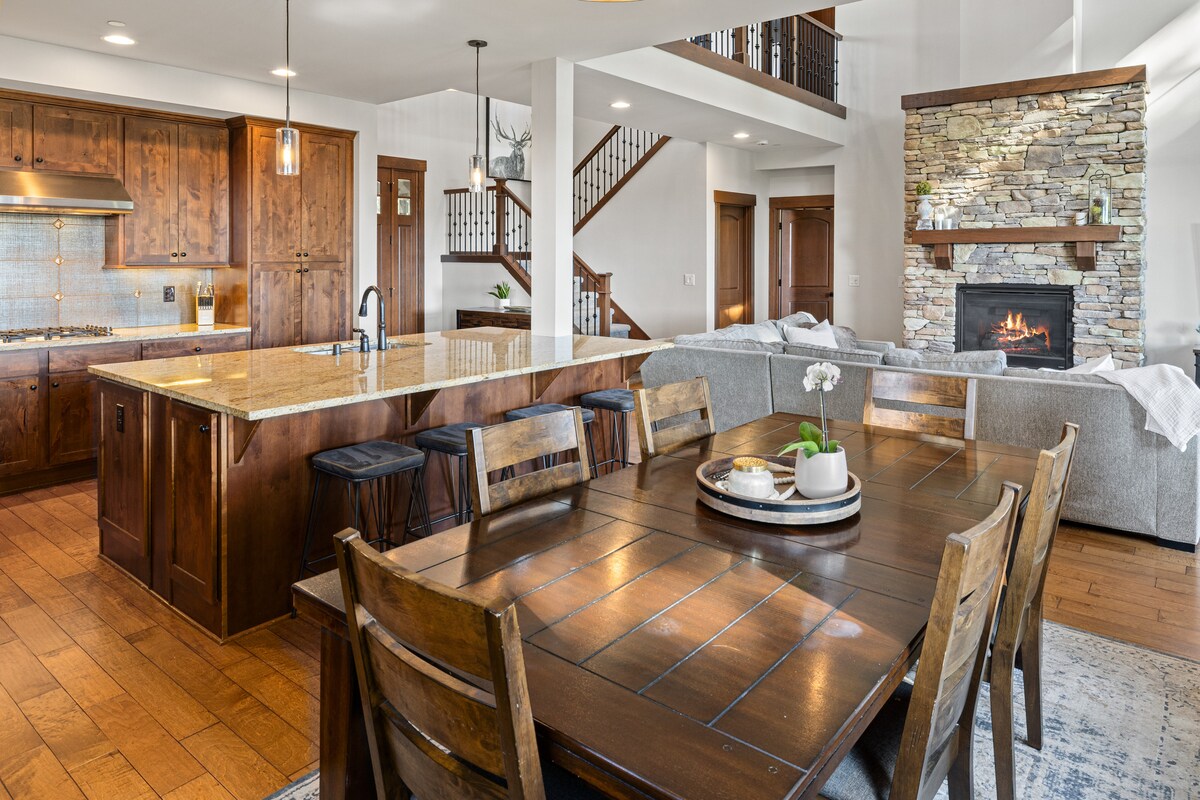 Whispering Pines Escape este o casă spațioasă de munte care îmbină farmecul rustic cu confortul modern și 4 sezoane de aventură în aer liber pentru toate vârstele. Tavanele boltite, un șemineu din piatră, bucătăria bucătarului și masa de 12' o fac perfectă pentru adunări confortabile și sărbători. Înconjurat de pădure, terasa retrasă cu șemineu și cadă cu hidromasaj este ideală pentru cafeaua de dimineață sau vinul de seară. Camera de jocuri oferă distracție pentru toate vârstele și ești la câteva minute de drumeții, ciclism, caiac, golf, tenis, pickleball și multe altele.