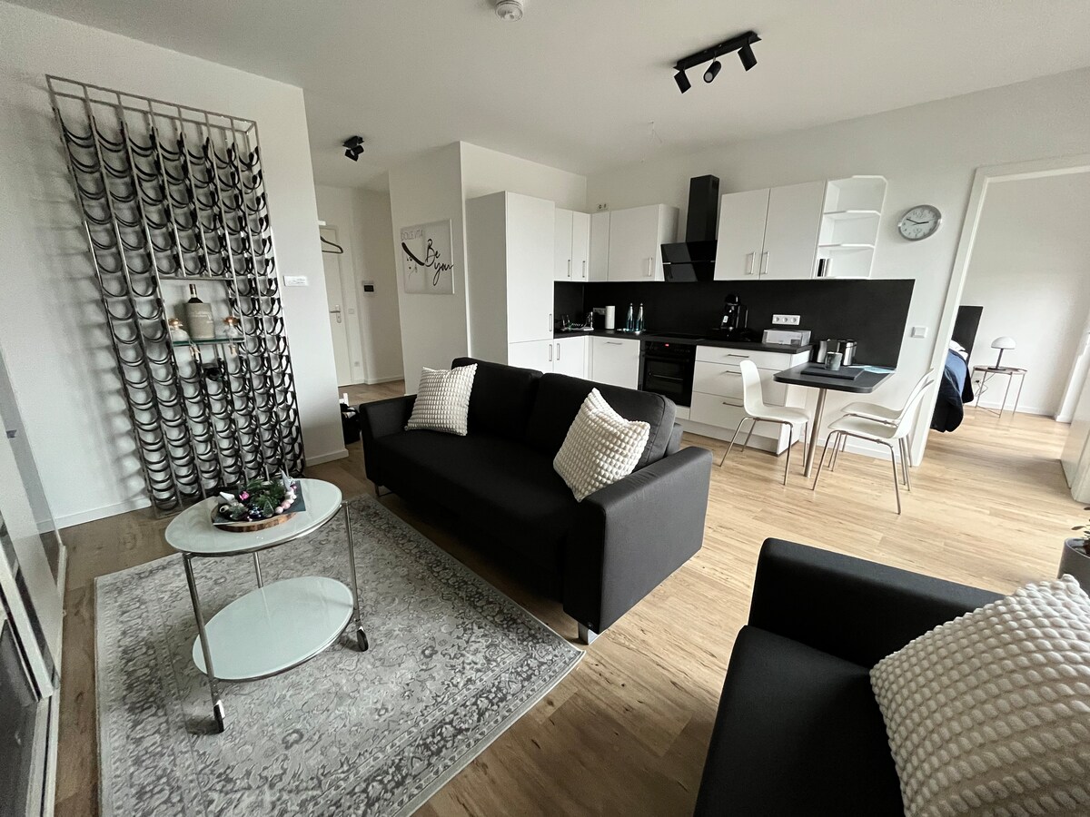 Bine ai venit în locuința ta temporară elegantă din inima orașului Gehrden - cazarea perfectă pentru oricine caută confort,eleganță și o locație excelentă!Bucură-te de o atmosferă plăcută în apartamentul nostru de 110 m² cu 4 dormitoare, zonă de living inundată de lumină, cu bucătărie de design și Terasă. Sosirea cu PIN-ul,supermarketurile,spitalul și transportul public pot fi accesate în 5 minute. Perfect pentru cei care călătoresc în interes de afaceri, pentru vizitatorii târgurilor comerciale sau pentru turiști. Rezervă acum și bucură-te de o ședere de neuitat!