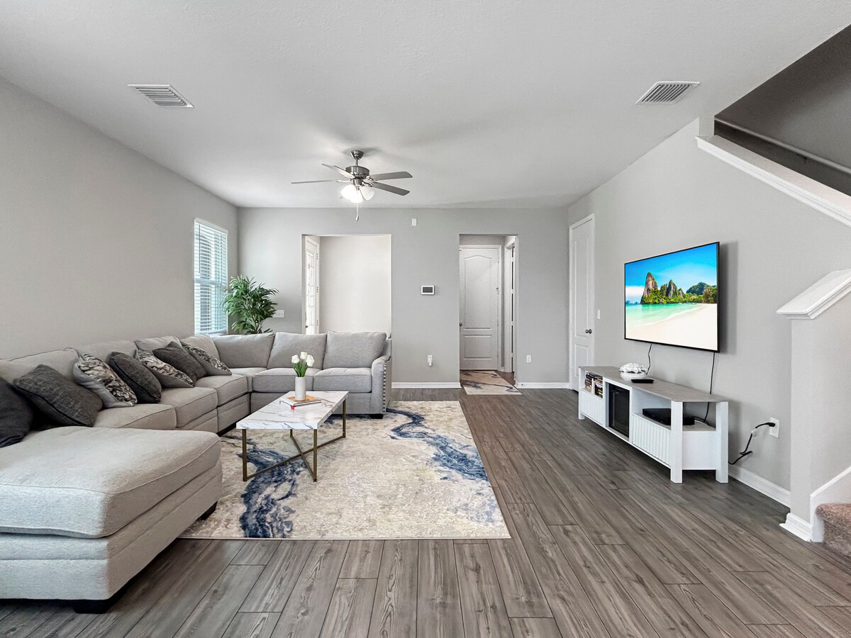Întreaga casă are o sală de jocuri dotată cu o masă de biliard și o masă de foosball. Zonă de lucru desemnată în dormitorul principal. Un pat King, un pat Queen și două paturi twin pentru a găzdui un grup de până la șase persoane. Un televizor în fiecare dormitor, living și cameră de jocuri. Acces facil la USF, Busch Gardens, restaurante, mall-uri și plaje. Distanță scurtă până la Tampa Premium Outlet și Advent Health Center Ice. Terenul de joacă, piscina comunitară, terenurile de baschet și tenis sunt situate convenabil peste drum.