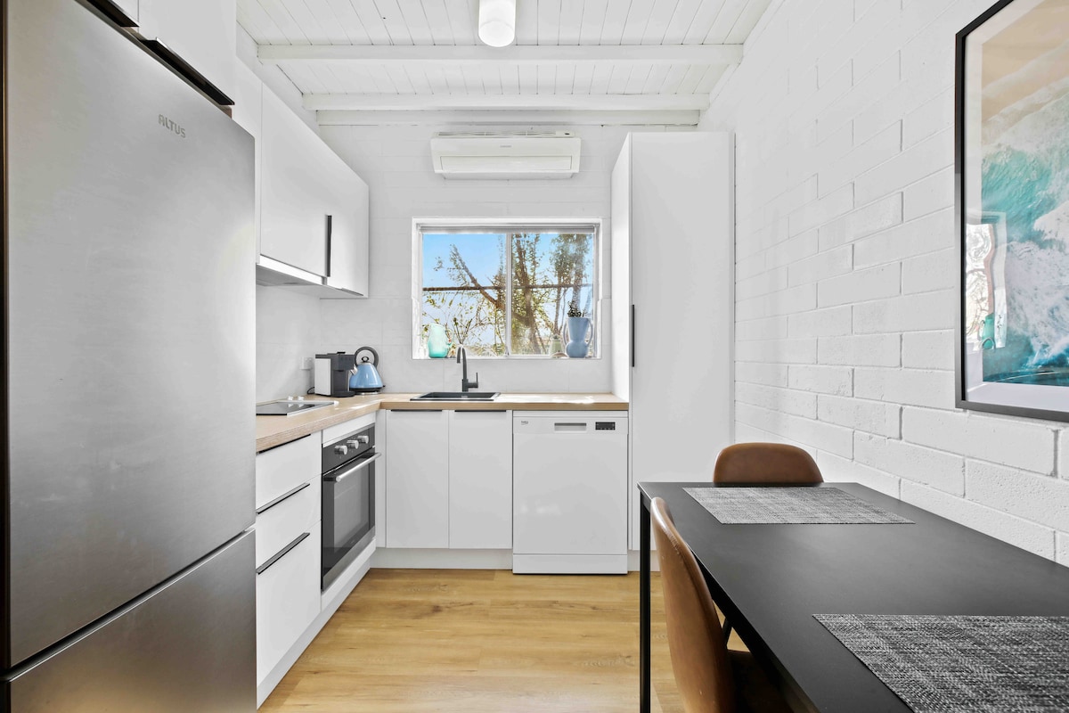 ❤️❤️Beach Escape❤️❤️ Trezește-te la obiectivele turistice ale oceanului și la mirosul de aer curat de mare 🏝️🏝️ 2 minute de mers pe jos până la plajă și la mai puțin de 20 de minute de mers pe jos de Henley Square,☕ această casă perfect situată cu 2 dormitoare este gata pentru tine. Dormitorul principal de la etaj are un balcon privat mare, pat matrimonial și uși glisante din sticlă pentru a profita de brizele mării și de apusurile de soare. Apusuri de soare frumoase. scurtă plimbare până la cafenele