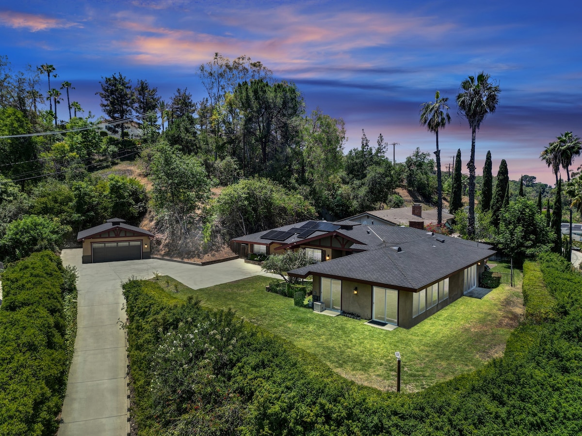 Amplasată în liniștitele dealuri sudice ale văii San Gabriel, această casă privată de 4 dormitoare/3 băi/3.200 mp, aflată pe vârful dealului, oferă priveliști panoramice uimitoare asupra orașului! Bucură-te de două camere de familie · una cu un televizor inteligent · cealaltă cu un pian și priveliști uluitoare. Relaxează-te într-un cadru spațios și confortabil, perfect pentru familii sau escapade liniștite. Savurează cafea la răsărit sau vin la apus de soare de pe terasă. La doar câteva minute de magazinele emblematice · Mâncare · Principalele atracții din LA · Ce e mai bun în SoCal, simțindu-te în altă lume ♡