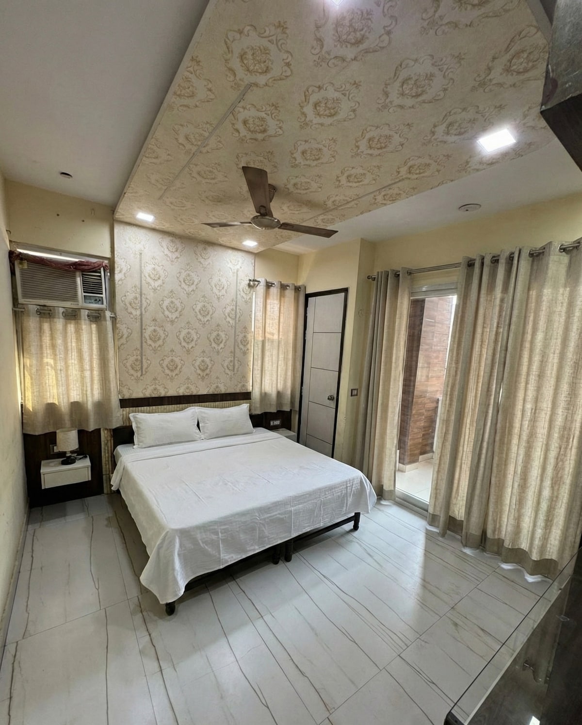 Curat, compact, confortabil și echipat. Set independent de 1 cameră cu balcon privat spațios. (Bucătăria și toaleta nu sunt atașate, dar se află în balconul din PVC). Șederea este într-o clădire rezidențială. **IMPORTANT - Nu există gheizer disponibil, dar este prevăzută o tijă de emulsie pentru apă caldă. Nu există lift în clădire. Șederea este la etajul 4 Intrare separată, bucătărie personală și baie. Fără spațiu comun * Proprietatea nu are parcare. * Parcare pe stradă pe riscul proprietarului. 4 minute de mers pe jos de stația de metrou extensie a parcului Krishna.