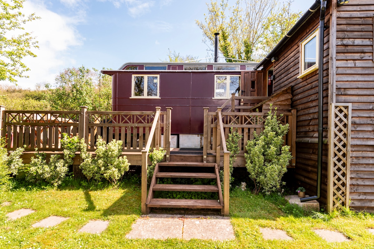 Caravană clasică confortabilă în peisajul rural minunat din Devon