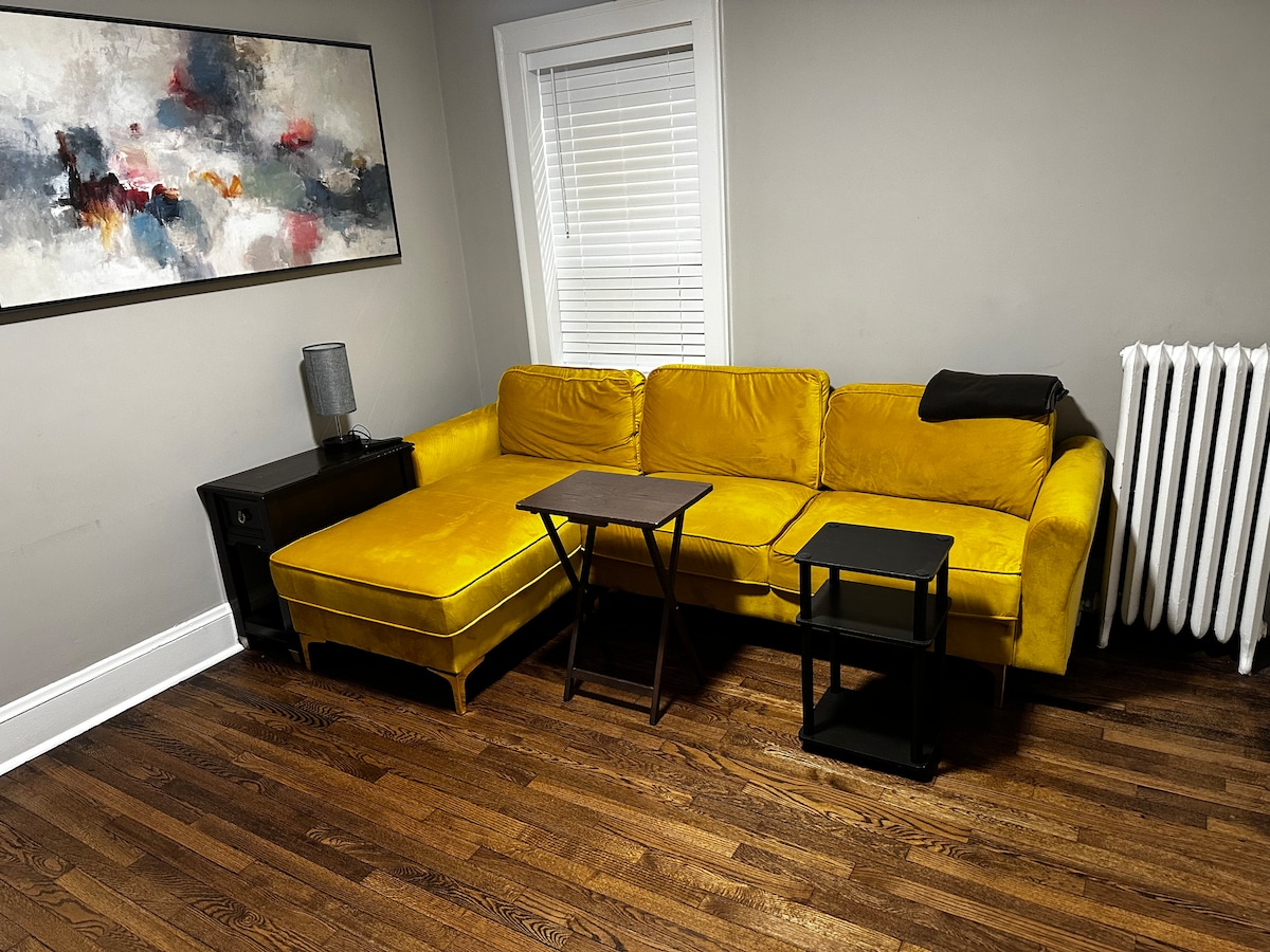 Bine ai venit în apartamentul nostru fermecător și elegant de la etaj, perfect pentru un refugiu confortabil! Bucură-te de intimitatea de a avea întregul spațiu doar pentru tine. Accesează apartamentul direct prin intrarea din spate, pe scara exterioară. Suntem convenabil situați la doar 10 minute cu mașina de Aeroportul Internațional Bradley. Înăuntru, găsești: - Un dormitor confortabil cu pat matrimonial, dotat cu lenjerie de pat proaspătă - O bucătărie complet aprovizionată, echipată: Oale, tigăi, vase de copt etc. Mașină de spălat și uscător automat de rufe