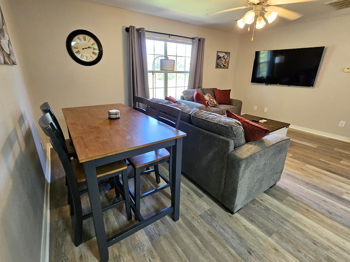 Renovat, 2 BR, 2,5 Bath Condo! Perfect pentru jocuri cu mingea, salvează-ți problemele de parcare și fă o plimbare de 15 minute până la Dudy Noble, Davis Wade sau Hump! Sau poți conduce în 3 minute! Fiecare BR are un pat matrimonial și baie atașată. Există o canapea extensibilă Ikea Queen în living pentru oaspeți suplimentari. Am proiectat și decorat ca propria noastră casă și știm că te vei simți ca acasă și aici! (Animalele de companie și fumatul nu sunt permise). Weekend-urile cu meciurile de acasă necesită o ședere de vineri și sâmbătă.