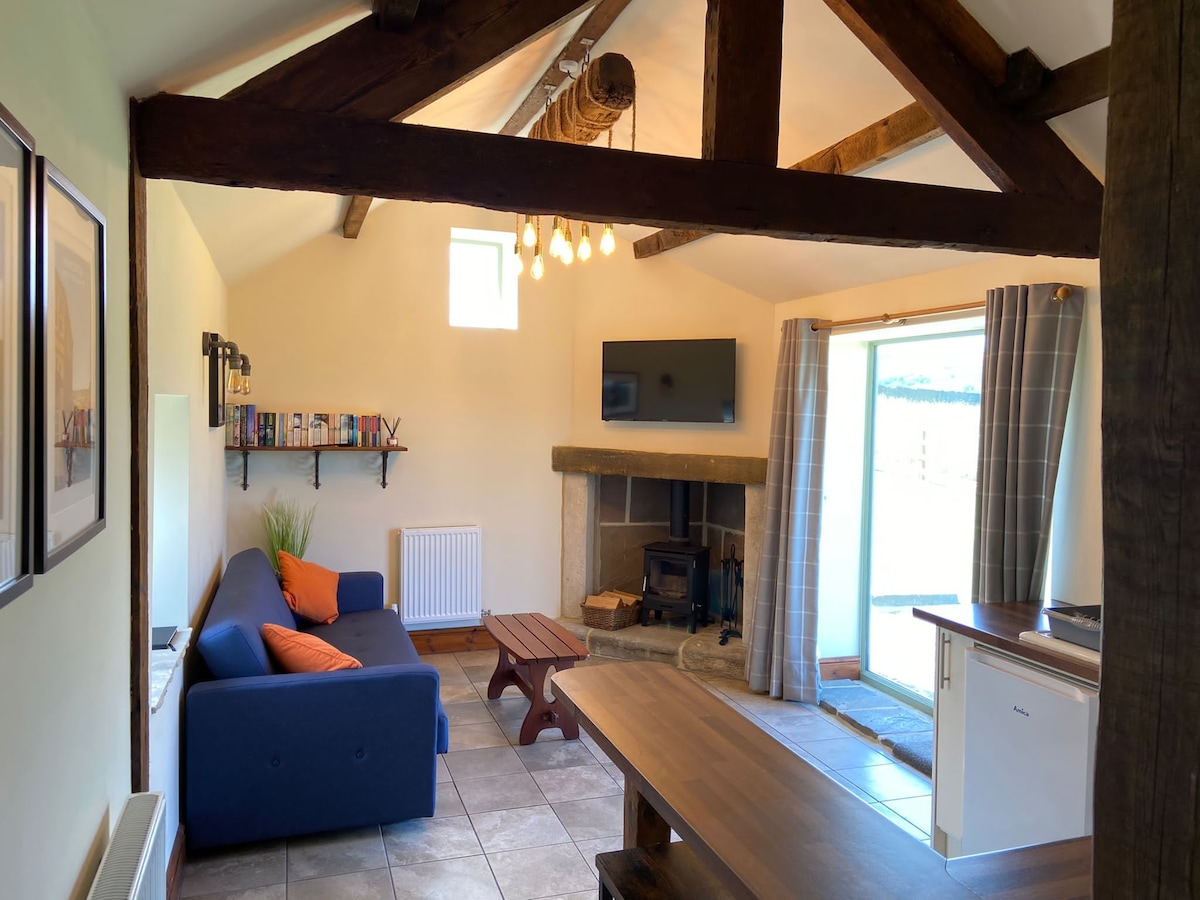 Relaxează-te cu stil la această cabană frumoasă din Haworth. O plimbare de 2 minute duce la locuința Bronte's și faimoasa stradă principală pietruită. Plin de farmec și caracter, cu caracteristici originale, cum ar fi grinzi; șeminee; scaune la fereastră și piatră expusă în Yorkshire. Echilibrează confortul modern cu unicitatea unei case la țară confortabile. O evadare indulgentă; baie de referință; pat king-size; lenjerie de pat 1000 TC; canapele din piele; scaune de bar și masă; sobă cu lemne; bucătărie de calitate; chiuvetă Belfast. Renovat cu dragoste și grijă