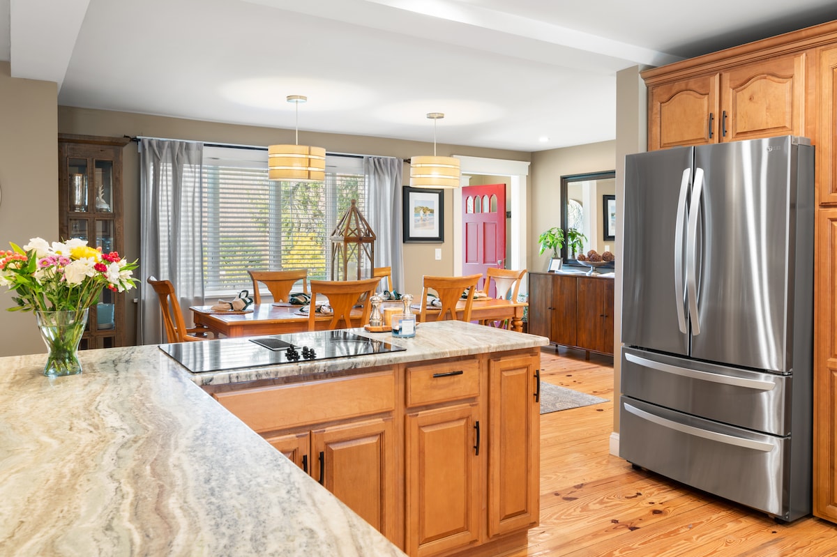 ALERTĂ DE EVADARE DE IARNĂ: relaxează-te pe coasta RI! Bine ai venit la Woodhaus Westerly — un refugiu de iarnă liniștit, la câteva minute de magazinele din centrul orașului, fabricile de bere și plimbările de pe coastă. Bucură-te de 3 acri împăduriți privați pentru focuri de tabără în noaptea înstelată, trasee de iarnă și nopți confortabile lângă soba cu lemne cu pături, jocuri și filme. Prietenos cu câinii și copiii, cu mult spațiu pentru relaxare. Perfect pentru cupluri, familii sau o reîmprospătare a muncii la distanță. ☀️Beach Pass revine în vara anului 2026! Vezi mai multe fotografii și actualizări @Woodhaus_Properties