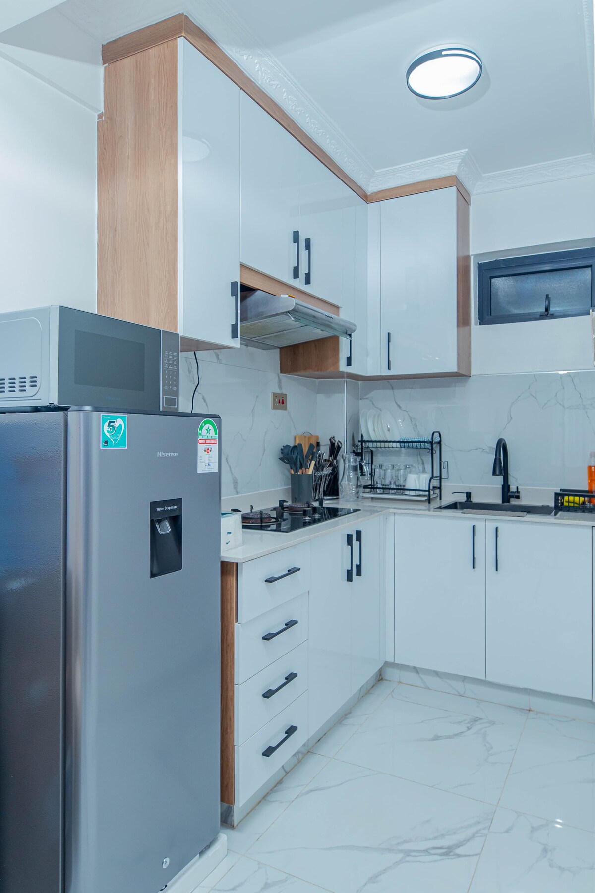 Dacă dorești să descoperi Nairobi într-un cartier în plină dezvoltare, autentic și plin de viață, acesta este locul potrivit. Beneficiind de priveliști aeriene uluitoare și de aer curat, acest apartament confortabil, mobilat modern, oferă toate facilitățile moderne într-o locuință frumoasă, situată în zona elegantă Kileleshwa. O conexiune Wi-Fi de mare viteză, o bucătărie complet utilată și imaculat întreținute sunt doar câteva dintre dotările esențiale oferite pentru a ne asigura că oaspeții se bucură de o ședere confortabilă și primitoare.