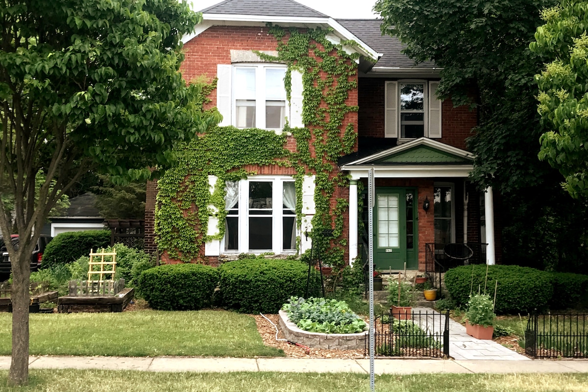 Vintage Charmer! 1935 Sears Craftsman Coach House apartament garaj. Un cartier frumos în condiții de siguranță, înconjurat de case istorice și la doar câțiva pași de calea de preerie din Illinois, parcuri, berării/baruri, restaurante și multe altele! Cu o atmosferă eclectică boho chic, cu bucătărie completă și mașină de spălat/uscător privat la fața locului. Cu vedere la o curte minunată accesibilă! Aproape de aeroporturi și acces facil la mijloacele de transport în comun/autostrăzi majore. La doar 30 de minute de Chicago Loop!