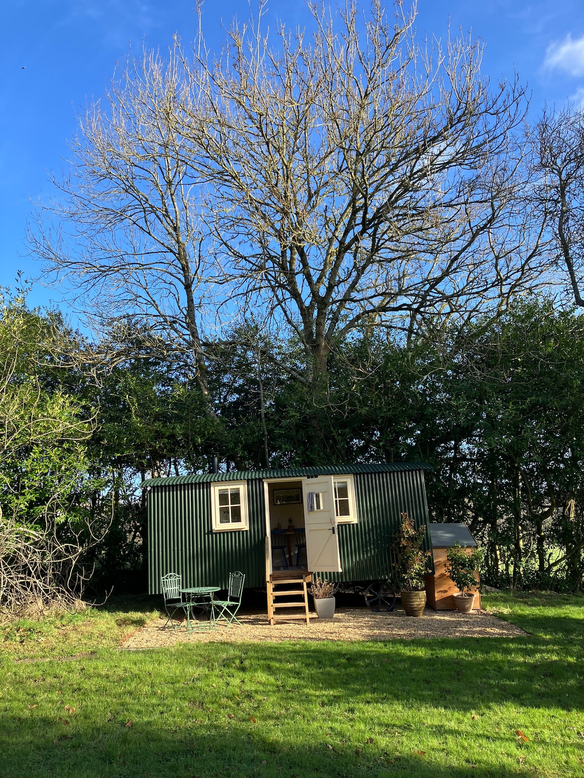 Colibă de păstori cu grădină privată securizată pentru câini.