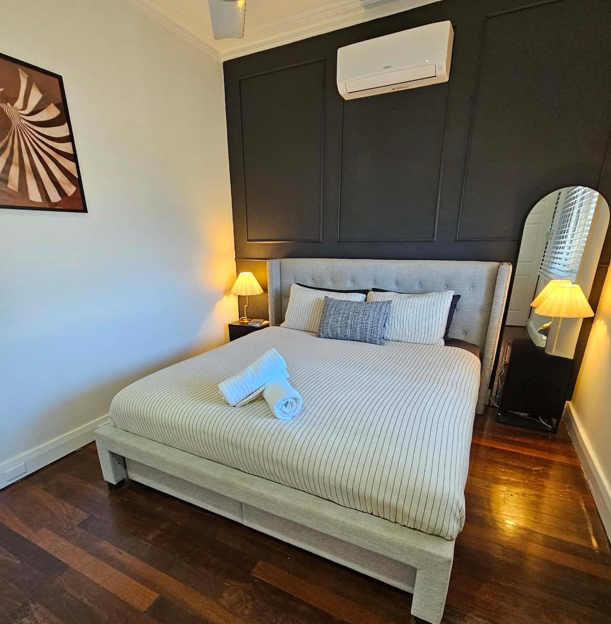 O casă cu 5 dormitoare, situată central, la 250 de metri de Beresford Foreshore, cu vedere la Champion Bay. Trei dormitoare conțin paturi matrimoniale, unul cu o regină și unul cu o pat de o persoană. Patru dormitoare conțin televizoare. The Foreshore boats AJ's Cafe, care este perfectă pentru o ceașcă de ceai în timp ce ai vedere la golf. Lângă cafenea se află un loc de joacă închis pentru copii. Distileria 30 Knotts este situată la 230 de metri distanță. Centrul comercial Northgate este la 450 m.