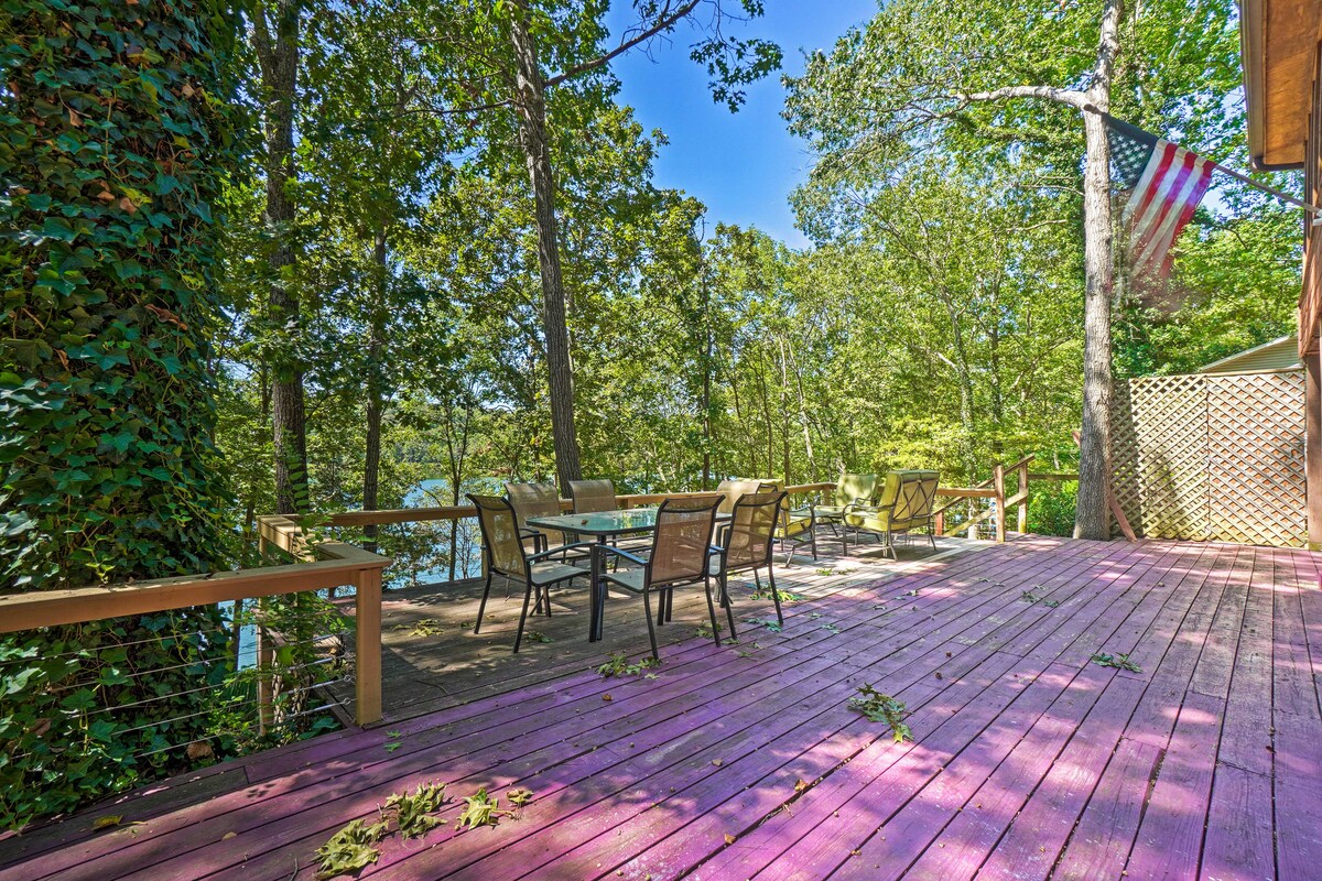Casa de nuci se află pe un bluf de 200 de picioare cu vedere la Lacul Table Rock. Facem parte din comunitatea Emerald Beach. Cea mai bună parte a acestei locuințe 3 BR 2 BA este puntea SF + 900+. Există un grătar cu cărbuni și scaune confortabile pe terasă pentru vară și o groapă de foc ușor de aprins pentru iarnă (inclusiv lemn). Rampa de acces la lac/barcă este la 1,5 km pe această stradă liniștită. Căprioarele cutreieră cartierul și, în rare ocazii, poți spiona vulpile și vulturii pleșuvi.