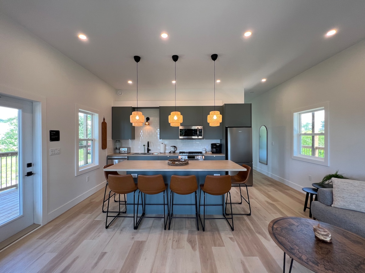 Aflată la înălțime deasupra Grand Étang, Cedar Peak oferă priveliști panoramice de la munți până la ocean. Privește răsăritul prin fereastra de 4 metri în timp ce savurezi cafeaua în spațiul de locuit în concept deschis. După o zi de explorare a Cape Breton, relaxează-te pe terasa panoramică la apus. Construit special ca o cabană retrasă, fără bariere, Cedar Peak are o bucătărie completă, home cinema și confort atent pentru o ședere de neuitat.