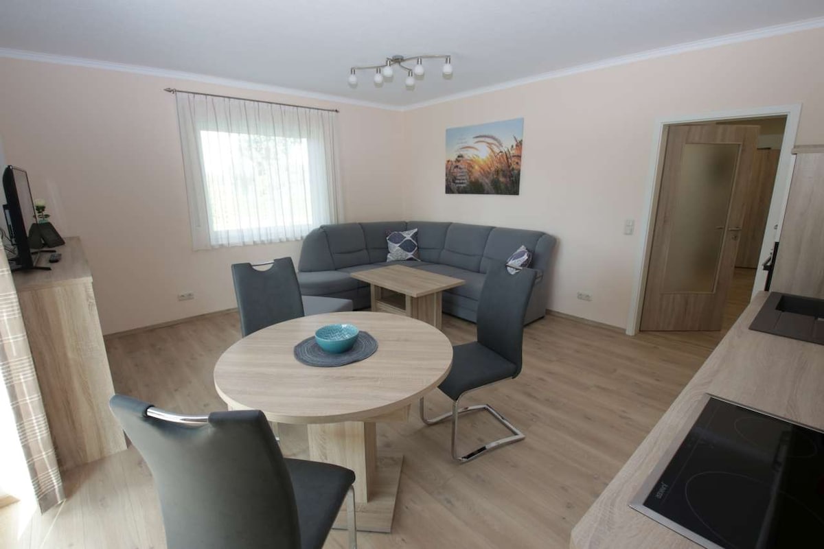 Îți oferim un apartament situat idilic într-o locație retrasă. Aici poți petrece zile de relaxare pentru două persoane. Te poți relaxa pe Canalul Ems - Jade cu o plimbare. Ești binevenit să-ți aduci câinele sau calul. Există mult spațiu!Există, de asemenea, spațiu pentru biciclete. Își pot încărca vehiculele electrice la fața locului. Excursii de o zi pe insulă sau în orașele de coastă sunt posibile după o scurtă plimbare cu mașina. Bensersiel 27 km Carolinensiel 25 km