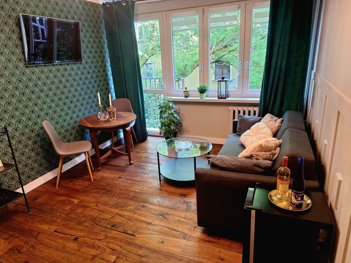 Apartament frumos, complet renovat, spațios (50 m2), în inima orașului. Apartamentul este situat la 3 minute de mers pe jos de gara principală și de stația de autobuz și în fața celui mai mare centru comercial Galeria Krakowska. Cu toate acestea, ferestrele sunt orientate spre frumosul parc (Strzeleciki), ceea ce îl face un sentiment uimitor de a fi în afara orașului cu toate firele în jurul lui. Bucătărie are toate aparatele noi cu peste, aragaz, mașină de spălat vase și de a construi în filtru de cafea Bosh! Locul are un design unic
