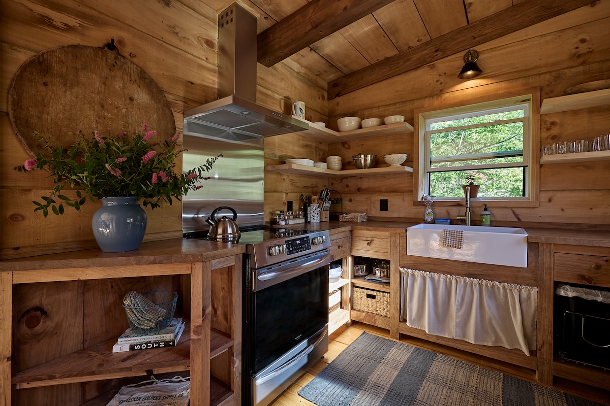 O experiență privată și eclectică de munte Appalachian te așteaptă la 4Creeks. Ei bine, departe de drumul principal și cuibărit în copaci, geodome-ul „On the Rocks” este o experiență de lux „glamping”! Această cupolă geodezică are totul: bucătărie completă, baie completă, căldură suplimentară și aer condiționat, pârâu bolborositor și vedere la pădure. Vrei să ieși? Suntem la doar 10 minute de centrul orașului. Cum ar fi să stai în? Bucătăria noastră completă și grătarul îți aduc confortul de acasă. Petrecere mai mare de 4? Rezervă Skoolie „High Rollin” pentru încă 2!