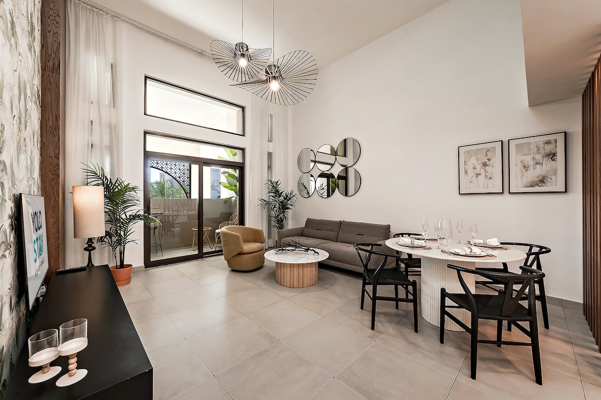 Apartament de lux cu 2 dormitoare lângă Burj Al Arab, mers pe jos până la plajă, piscină