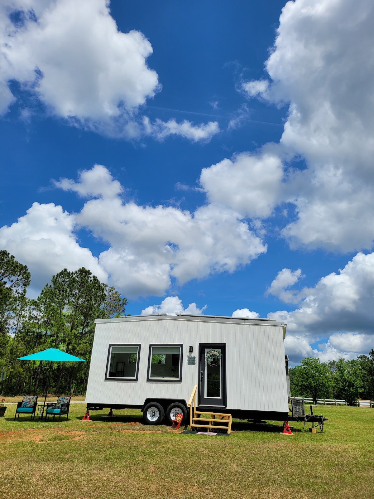 Want to escape the hustle and bustle come stay in a 196 square feet Tiny Home. Our little town is very rural, charming and quiet! We are only 115 miles from Atlanta 147 miles to Savannah. Situated on 10 acres you could sit around a campfire, visit the horses and donkeys or just see the stars that fill our night skies. Our have been featured on multiple tiny home shows. Sweet Pea has a three burner cook top and a convection micro wave. This home does have a lofted bedroom with a ladder.