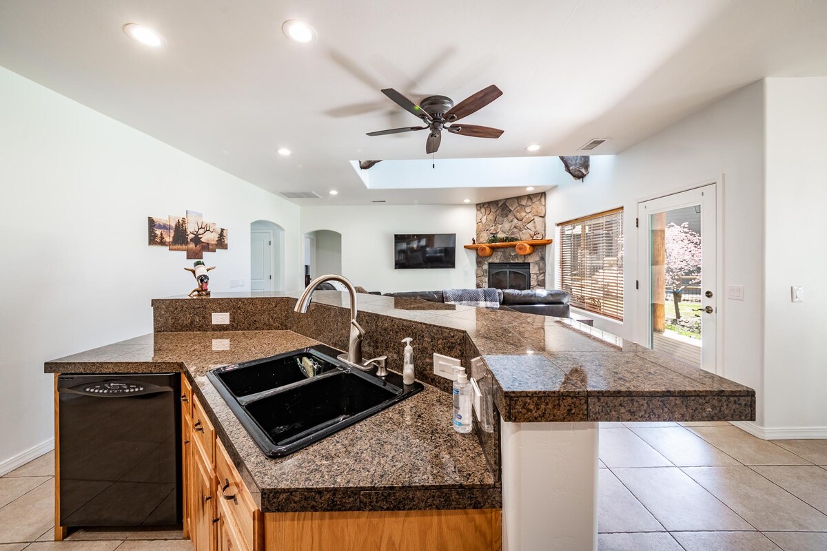 Bine ai venit în casa noastră fermecătoare cu 3 dormitoare și 2 băi, amplasată în orașul Williams, CUNOSCUTĂ și sub numele de „Poarta către Marele Canion”, Williams a fost ultimul oraș de pe Historic Route 66 care a fost ocolit de Interstate 40. Doar o săritură și un salt în locurile preferate ale călătorilor, cum ar fi Flagstaff, Sedona, Jerome și mai mult! ✔ 3 BR/2 băi ✔ Bucătărie complet utilată ✔ Grătar Televizoare ✔ inteligente în living și dormitoare ✔ Mașină de spălat/uscător ✔ Wi-Fi gratuit ✔ Parcare gratuită Groapă ✔ de foc ✔ Șemineu electric interior