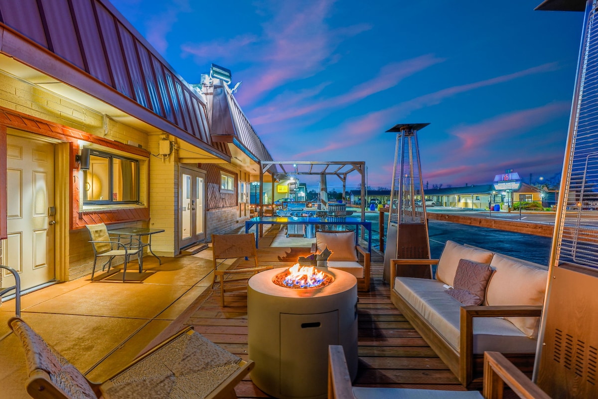 Cowboy Social Club oferă farmec și confort, ieși afară și te vei trezi într-o scenă similară cu mașinile de film! Această proprietate se află pe Route 66. Oferim dotări care includ: - Minge de murături, ping-pong și gaură de porumb - Saună, baie de gheață și jacuzzi - Bucătărie și grătar în aer liber - Spălătorie - Wi-Fi - Televizoare - Check-in independent Baia și camera sunt complet ale tale și private, dotările sunt comune. Avem personal disponibil care locuiește în apropiere dacă ai nevoie de asistență în timpul șederii :)