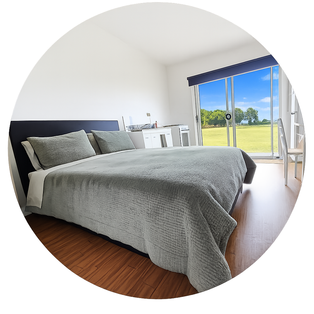 Our luxury “Fin” cabin at Longboarders Micro-Resort is perfect for couples seeking a romantic escape or small families of up to 4 (1 queen bed, 1 sofa-bed on mezzanine). Set in 1.5 acres of private landscaped grounds & featuring a loft-style balcony with sunset views across picturesque farmland. Relax in the bath & watch farm animals & the occasional wallaby graze just outside your window. Toast marshmallows around your own private fire-pit & enjoy a BBQ under the stars on the rear deck.