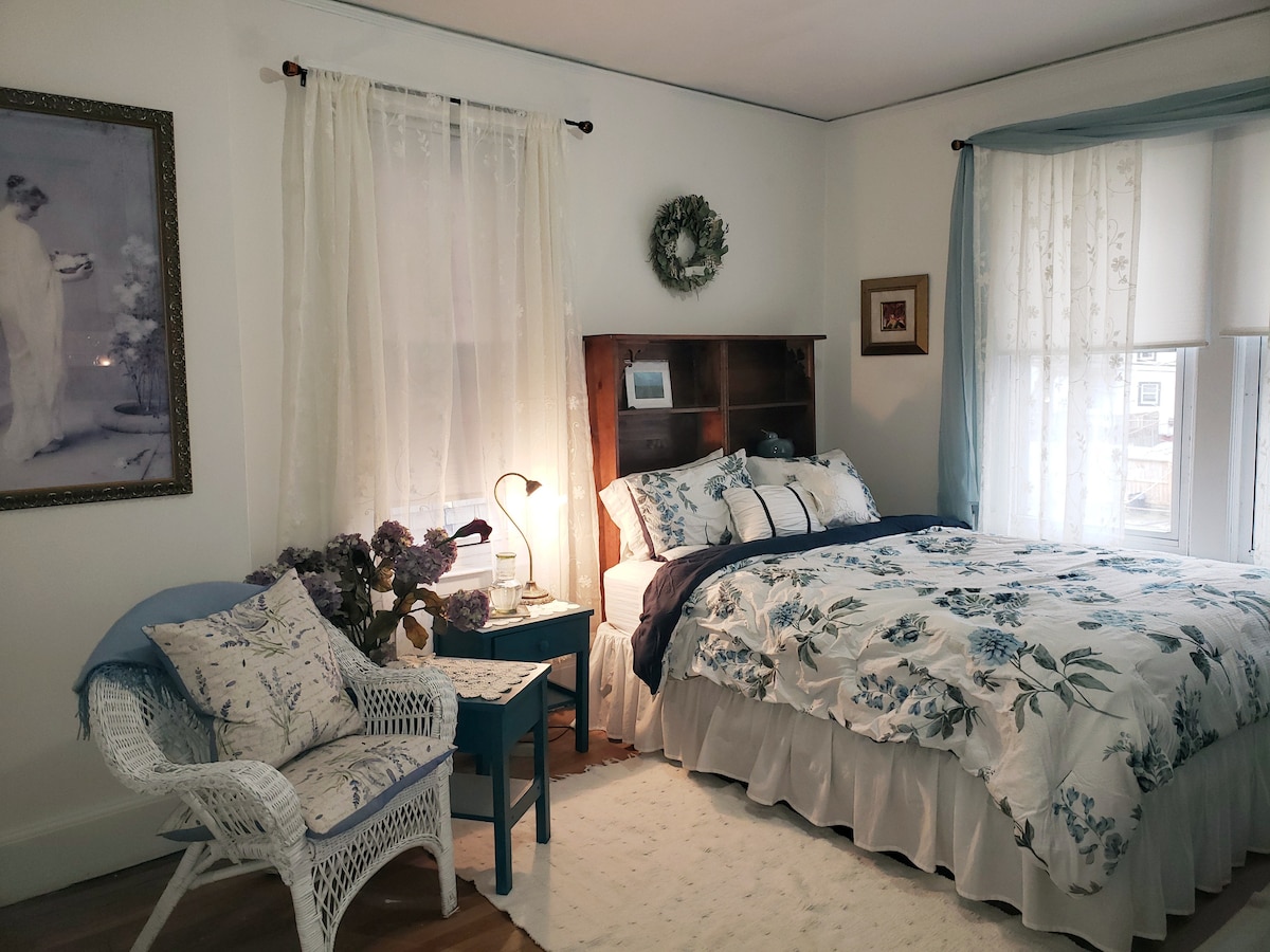 Dormitor spațios și liniștit la etaj într-o casă artistică istorică liniștită, podele originale din lemn, ferestre, mobilier de epocă. Pat confortabil cu platformă cu saltea cu spumă cu memorie, cearșafuri netede, plapumă. Zonă de relaxare privată + toaletă/birou mic. Atașat o baie albastră istorică minunată, cadă cu hidromasaj și duș. Această cameră este caldă vara și răcoroasă iarna, datorită ferestrelor istorice. Liniștit, prietenos cu persoanele queer, sobru. Bine ai venit la medicină, asistente medicale de călătorie și pe cei care se mută! Nu este un hostel sau un hotel, o locuință.