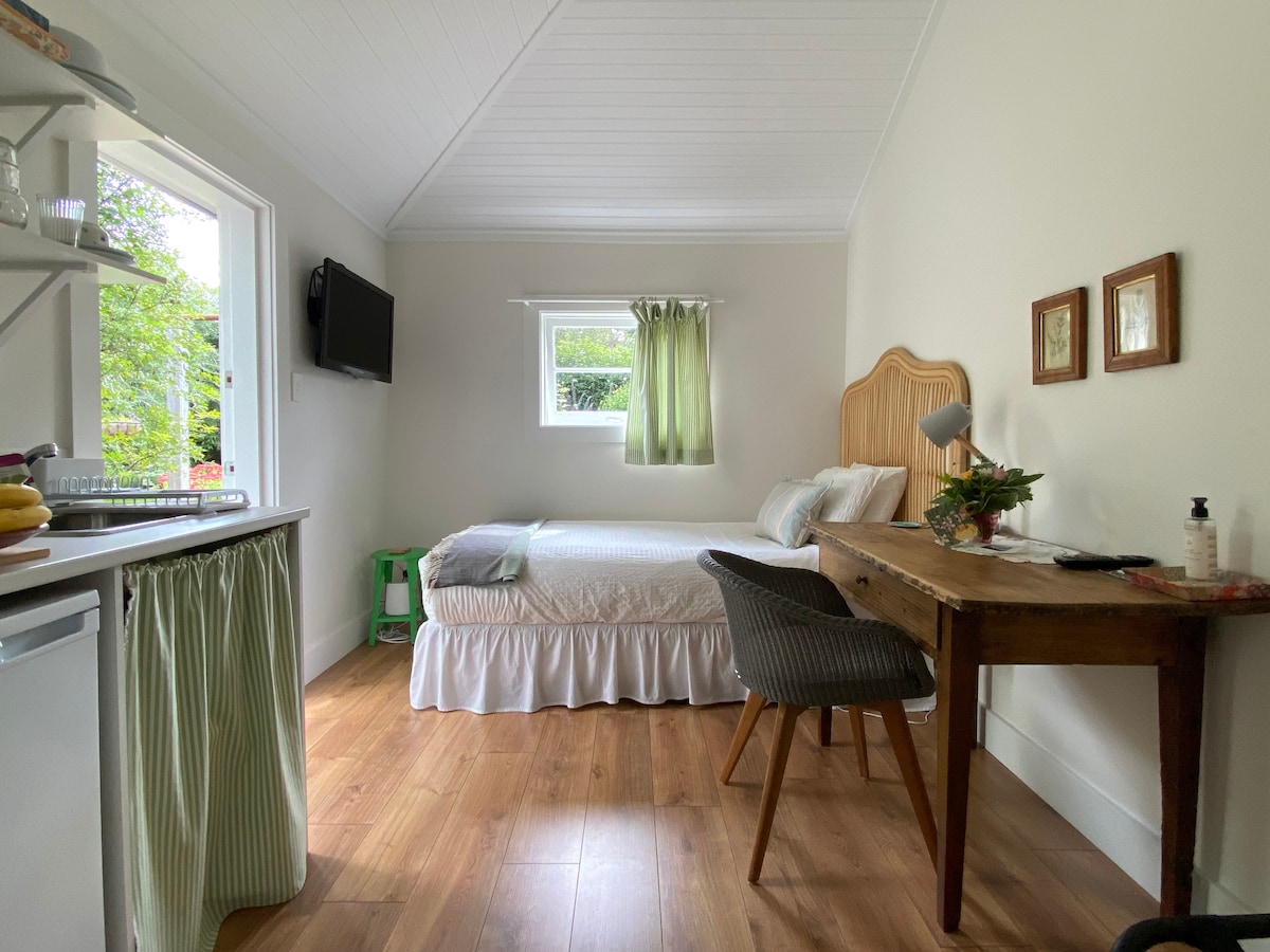 Relaxează-te în frumosul nostru studio japonez privat, în dormitorul nostru în plan deschis și în camera de zi cu baie mică separată. NU ESTE potrivită pentru copii sau animale de companie. Studioul are un frigider bar, cuptor cu microunde, prăjitor de pâine, aparat de cafea și fierbător de apă. Fără bucătărie. Bucură-te de 9 acri de grădini uimitoare. Locație perfectă pentru ședințe foto, ceremonii de nuntă sau escapadă. De asemenea, avem „The Dairy”, care este o cabană cu 1 dormitor, cu o bucătărie și șemineu. Strict pentru nefumători. Toți oaspeții trebuie să fie vaccinați împotriva COVID-19. STRA 6648