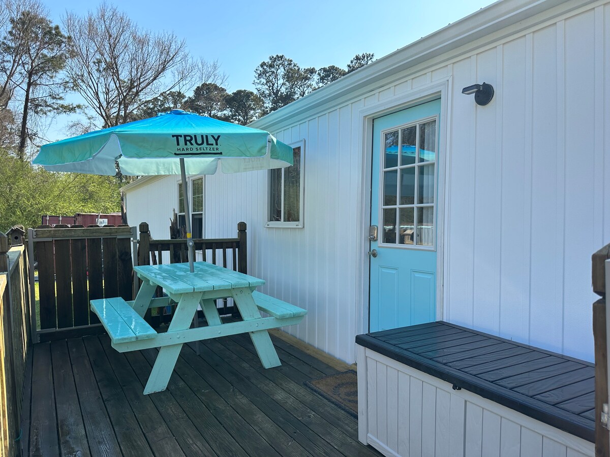 Acesta este apartamentul perfect pentru următoarea ta escapadă pe plajă! Aproximativ o jumătate de milă până la cel mai apropiat acces la plajă. Apartamentul nostru confortabil cu tematică de plajă este atașat la un spațiu de locuit separat (similar cu un duplex sau un apartament cu socru) și are o intrare separată. Este ascunsă în pădure, chiar vizavi de pârâu și gata să te întâmpine! Am suferit daune provocate de furtună la doar o lună după ce am început Airbnb, așa că a fost renovat recent de două ori!