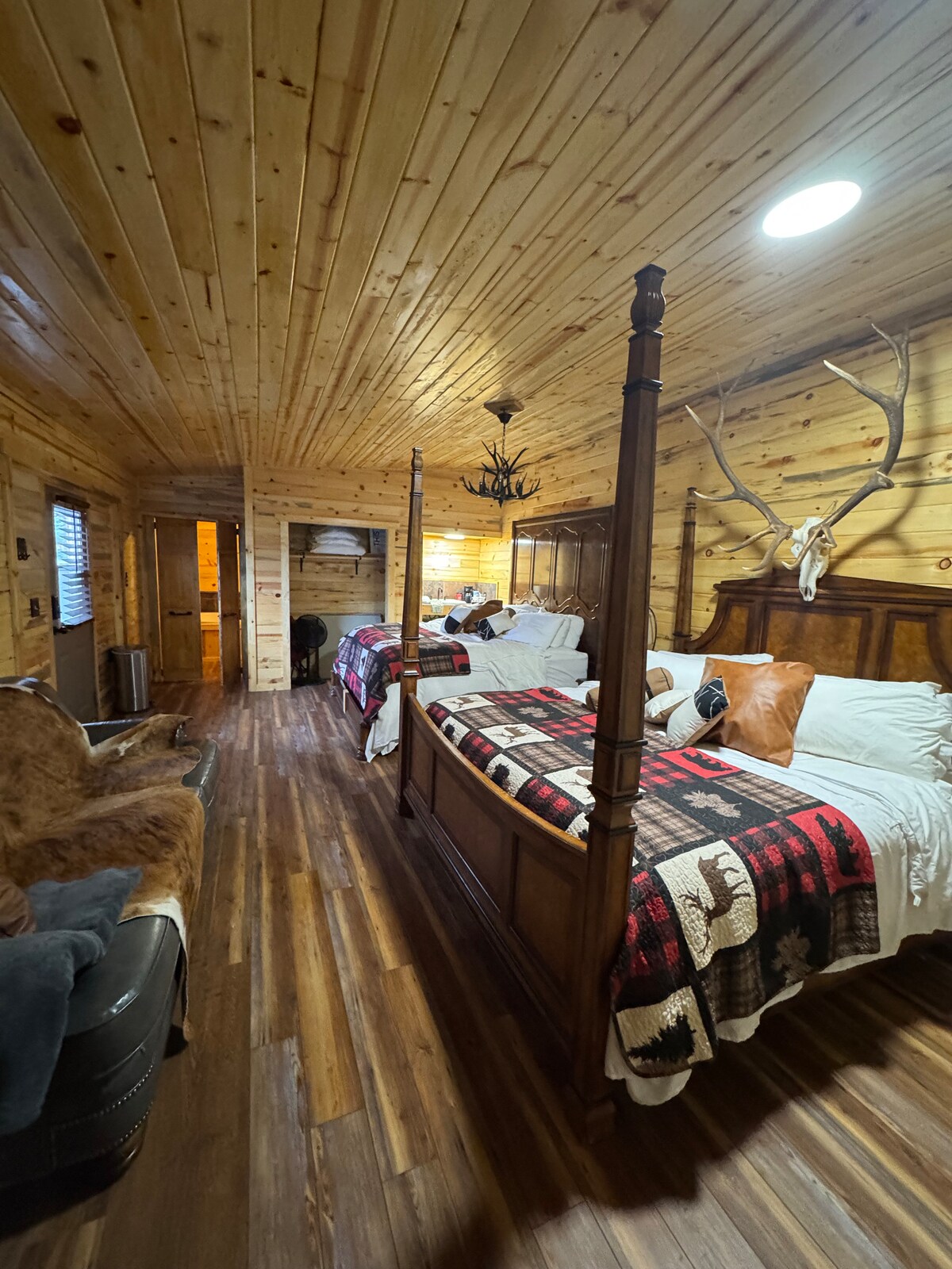 Suntem încântați să împărțim cabana noastră personalizată. Spațiul este versatil și funcționează bine pentru o escapadă de cuplu, călătoria cuplului, familii sau, eventual, 2 familii mici. Folosim cabana cu prietenii și familia în mod periodic, astfel încât avem un dulap și o cameră deasupra garajului care sunt încuiate pentru obiecte personale. 6 oaspeți confortabil 2 dormitoare 4 paturi-1 queen-size, 1 pat dublu, 1 twin, 1 saltea futon și o saltea extensibilă 2 băi – 1 duș, 1 cadă completă. Check-in independent .... Fă singur check-in folosind caseta securizată