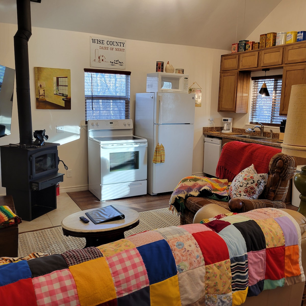 Sojourn at Sunflower. Come stay at a renovated False Front Commercial building. This roughly 600 sq. ft. home provides a full kitchen, bedroom, bathroom, and an open concept living room and laundry room. Also provides real wood burning stove. We are flexible on booking times. Late night same day bookings are allowed. Bridgeport - 9min/6mi Decatur - 22min/14mi Texas Motor Speedway - 40min/31mi Six Flags Over Texas - 1hr/58mi