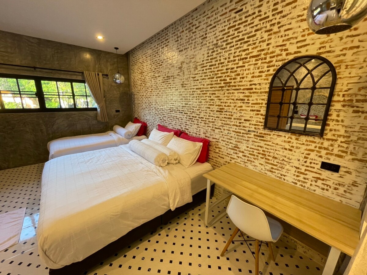 Cazare retro elegantă în apropiere de Mekong. Decor răcoros care te va duce înapoi în anii '70. Cu vilă cu 1 dormitor, 1 living, 1 baie, balcon, balcon, cameră privată, aer condiționat, toate camerele cu echipamente de bază, cum ar fi TV, frigider, cuptor cu microunde, seif, uscător de păr, săpun, șampon. Am selectat cu atenție materiale pentru a vă oferi confort pe tot parcursul timpului cu noi. Cu peste 5 hectare de împrejurimi de copaci, puteți respira aer curat în mijlocul orașului.
