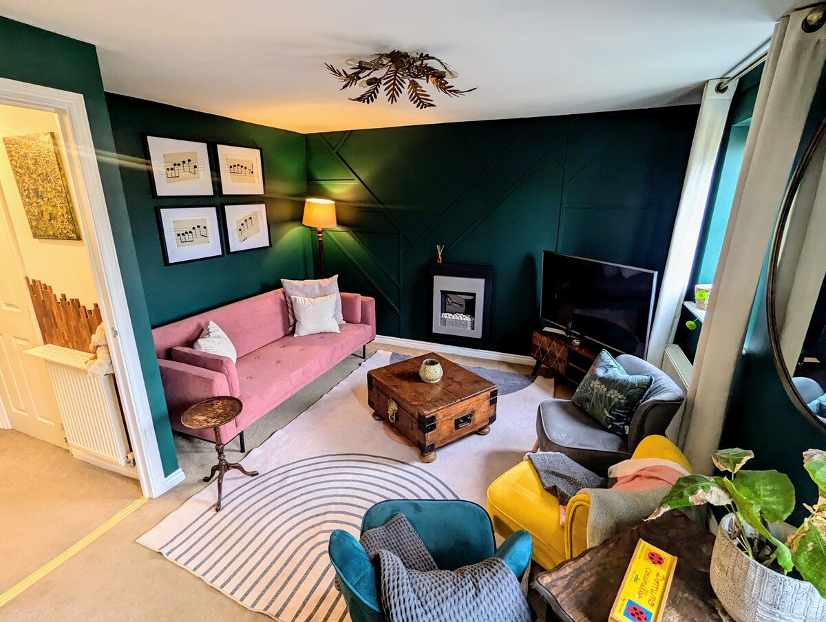Apartament la parter cu cazare prietenoasă pentru persoane cu dizabilități. Aer condiționat în ambele dormitoare. Poarta de acces către Cotswold și Palatul Blenheim. 10 minute de mers pe jos până în oraș. Vizavi de Pure Gym, McDonald's Tesco și Premier Inn. Parcare securizată cu utilizarea încărcătorului EV. Apă, ceai și cafea gratuite în cameră. Anulare gratuită până cu o zi înainte, pentru că dacă tu ești fericit, și noi suntem fericiți. Orele de check-in și check-out sunt potrivite pentru a te bucura de ședere. GO-taxi te poate duce la Caswell House, pub-uri și restaurante etc.