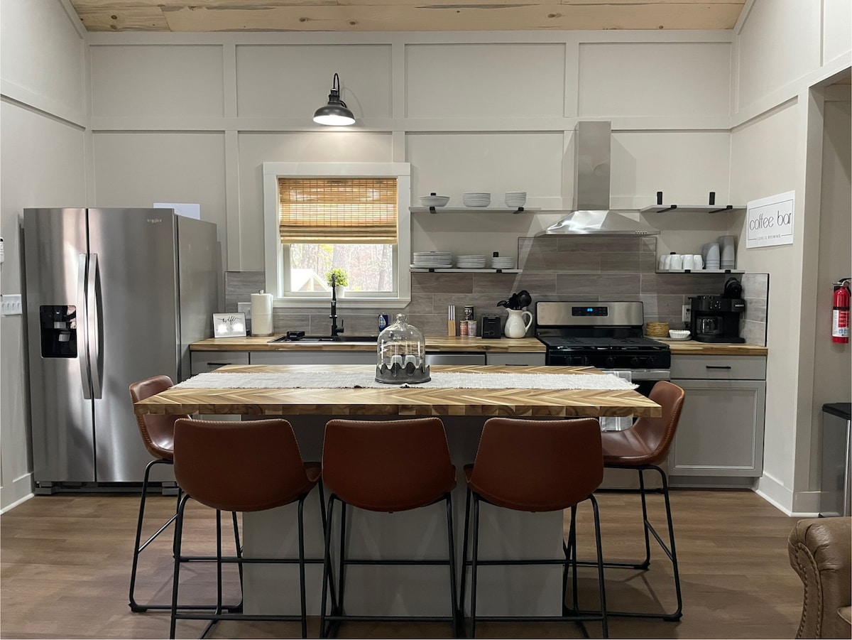 Pentru cei cu inimă sălbatică care tânjesc după confort — la doar câteva minute de traseele Wolf Pen Gap ATV, Evergreen Dreams combină aventura de pe muntele Ouachita cu luxul la nivel de spa. Petrece ziua făcând drumeții, călărind sau urmărind cascade, apoi întoarce-te la o cadă cu hidromasaj din cedru sub stele, o saună cu infraroșu, duș în aer liber, cadă de baie și duș cu trei capete. În interior, bucură-te de saltele Casper Dream, lenjerii de pat moi și o canapea Joybird verde pădure.