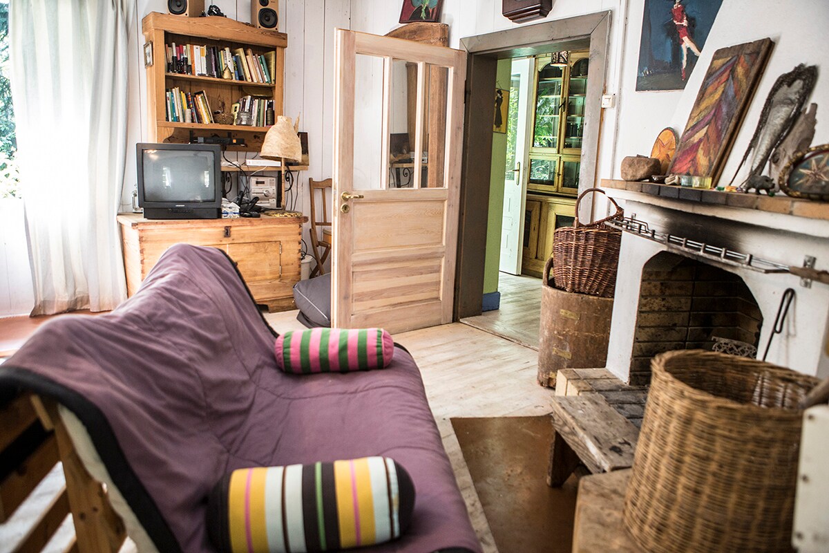 O cabană fermecătoare în pădure, la 100 de metri de un lac. Spațiul include un dormitor în loft, living, bucătărie, baie și al doilea dormitor cu 2 paturi single. În afara unei zone cu vatră, proiector + ecran (în interior și în aer liber) pentru nopțile de film sub stele. Există, de asemenea, o cadă cu hidromasaj gonflabilă. Acesta este un loc plin de suflet, nu construit pentru închiriere comercială. Construită în anii 1980, cabana a fost neglijată de ani de zile. Acum, restaurat cu dragoste, toate veniturile din chirii merg spre renovarea sa continuă.