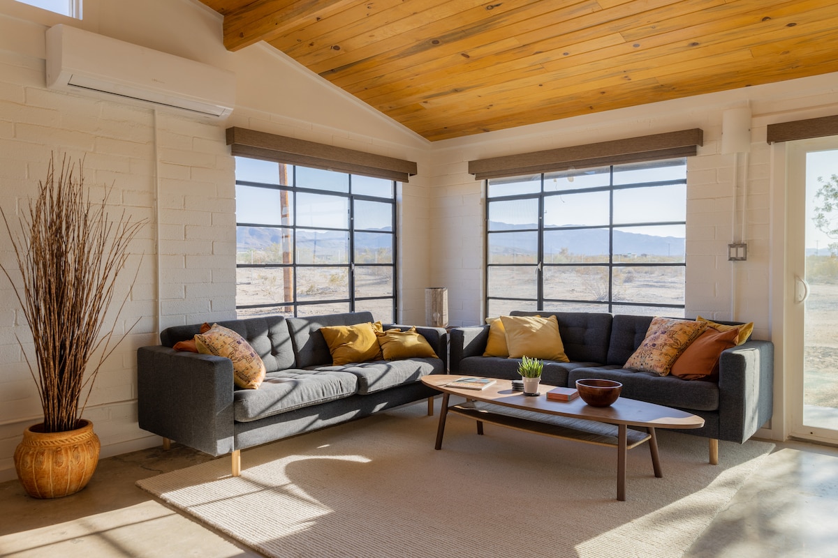La mai puțin de o milă de Parcul Național Joshua Tree, Tasi 29 este o ascunzătoare modernă în deșert pe 5 acri, lângă vastul deșert deschis și munți. Te vei topi în sentimentul unic de spațiu deschis silențios. Cândva o simplă casă bloc „gospodărie” din 1955, această locuință renovată și decorată în stil rancho a fost reamenajată pentru a lăsa priveliștile deșertului să pătrundă. Urmărește spectacolul de pe terasa acoperită, piscina cu apă sărată sau în jacuzzi-ul uriaș, în timp ce apusurile de soare incredibile ale deșertului fac loc unui coronament suprarealist de stele.