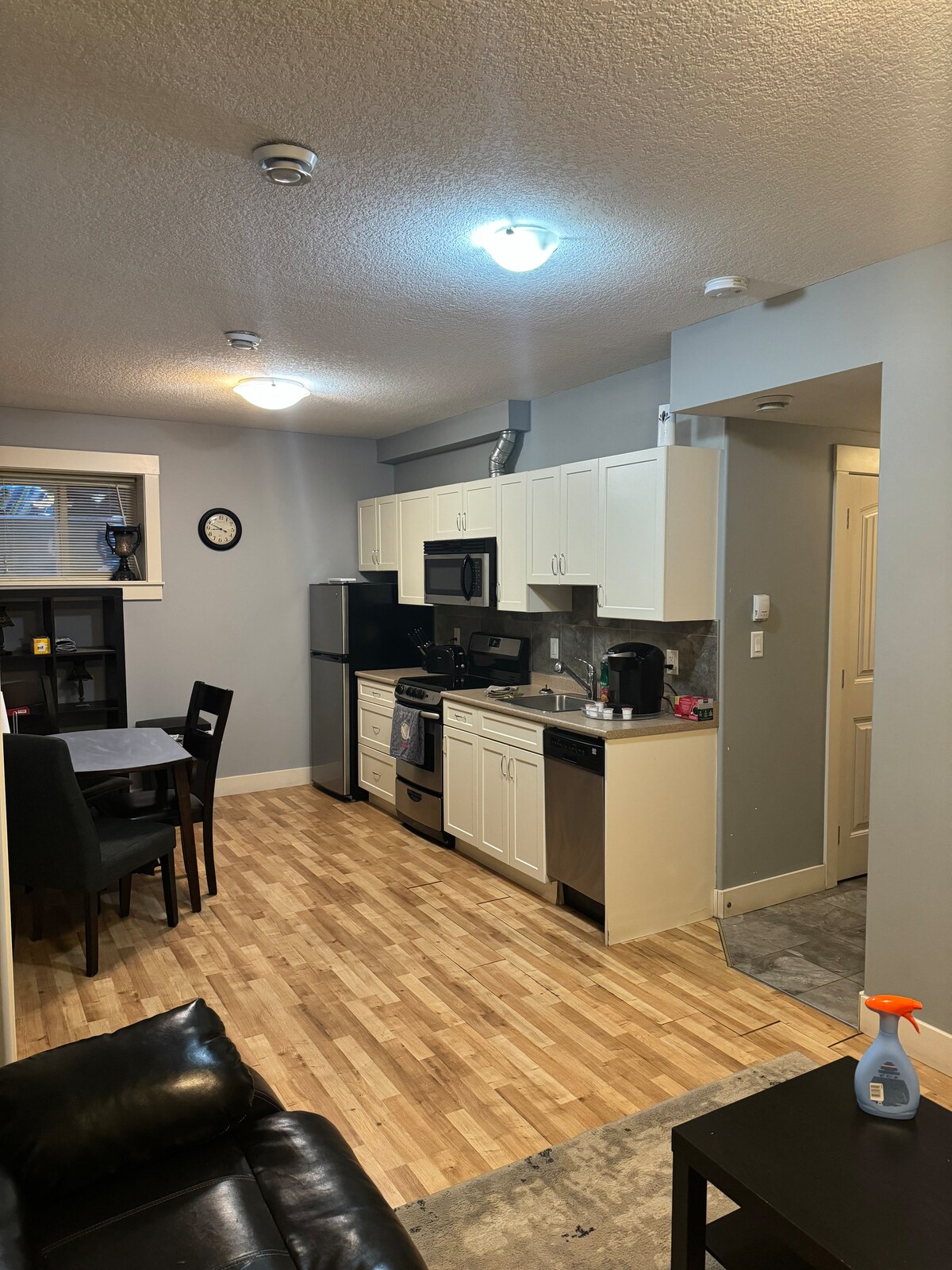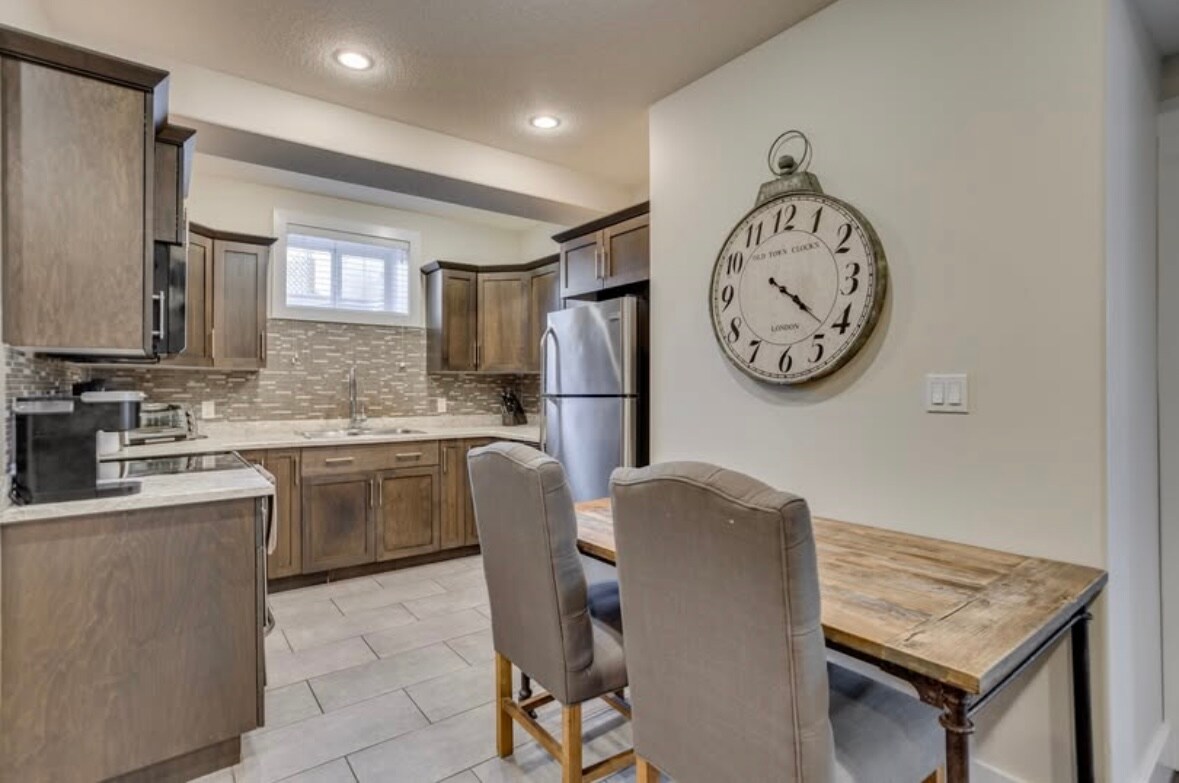 Bine ai venit în această suită nou proiectată. Această suită este foarte spațioasă, cu un living deschis, bucătărie, zonă de luat masa și dormitor matrimonial!!! Situat în Timberlea, la 1 minut de mers pe jos de stațiile de autobuz, la câteva minute de traseele de mers pe jos și la o scurtă plimbare cu mașina până la magazinele alimentare. Unitate complet separată de la ultimul etaj, fără uși care leagă spațiile. Această suită confortabilă include bucătărie completă, TV de 55și65”, inclusiv Netflix, Disney+ și Prime, 1 pat king-size și 1 pat queen-size, dulap, baie completă, spălătorie și internet.