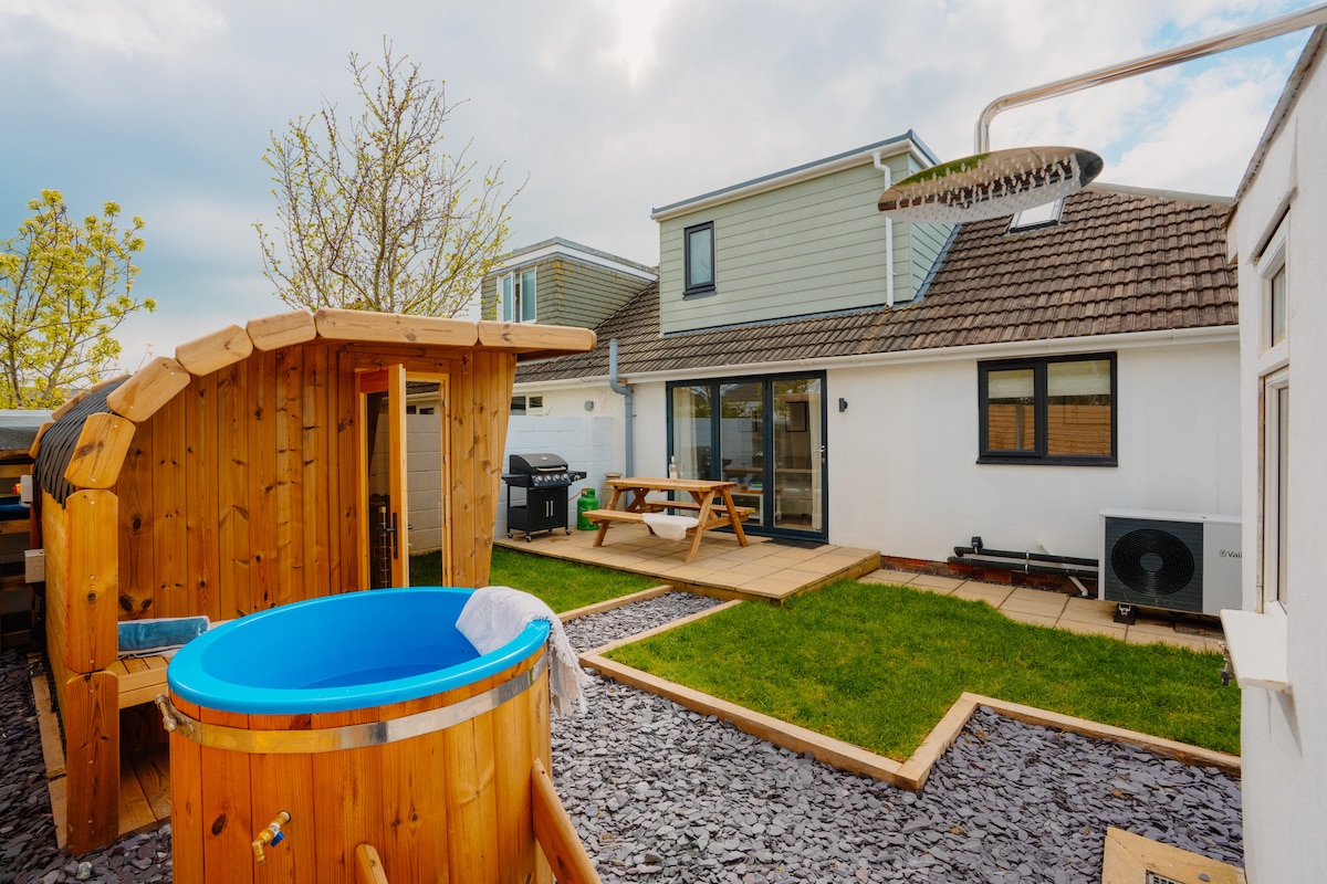 Nordic Surf House is a stylish coastal retreat in Braunton, just minutes from Saunton Sands Beach. Blending Scandinavian design with relaxed luxury, it’s perfect for couples or friends with three double bedrooms and three bathrooms. Enjoy bright open living spaces, calming interiors, and a private garden spa with sauna, cold plunge poo and heated outdoor shower—ideal for unwinding after surf, or coastal walks. Perfect garden spa escape Please note sauna / Cold plunge Is extra £100.00