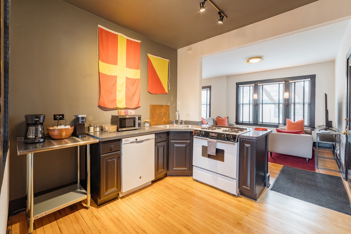 Mergi la Chicago cu un echipaj căruia îi place spațiul personal? În acest spațiu mare cu tematică nautică, toată lumea se poate relaxa și se poate întinde fără să deranjeze pe nimeni. Întinsă pe două etaje întregi, este o casă spațioasă, cu design modern, în Ravenswood. La câteva minute de Wrigley Field, Andersonville și Linia Brown. Pereți albi, ornamente negre, steaguri maritime norvegiene, paturi confortabile, lumină grozavă și... o mulțime de spațiu pentru grupuri mari pentru a respira de fapt.
