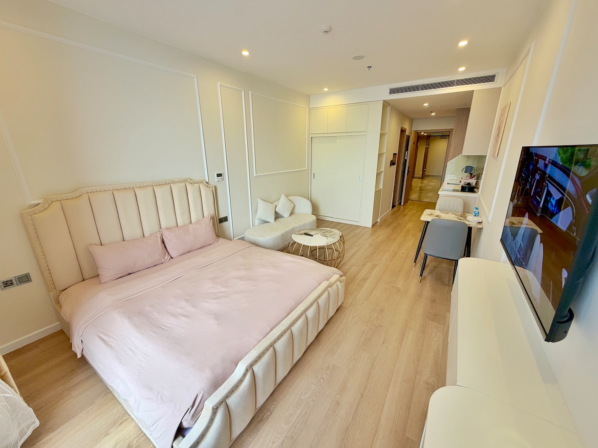 Promoție specială -20% reducere pentru șederile de lungă durată: Bucură-te de o ședere relaxantă în apartamentul nostru studio modern și complet echipat, situat în prestigiosul Alacarte Ha Long , la doar câteva minute de mers pe jos de plajă. Perfect pentru cupluri, familii mici sau persoane care călătoresc în interes de afaceri. • Suprafață: 45 m² • Amenajare: studio spațios, bine luminat, cu decor contemporan • Pat: 1 pat matrimonial 1m8 • Ferestrele mari din sticlă oferă priveliști parțiale ale golfului Ha Long • Curat, confortabil și întreținut profesional