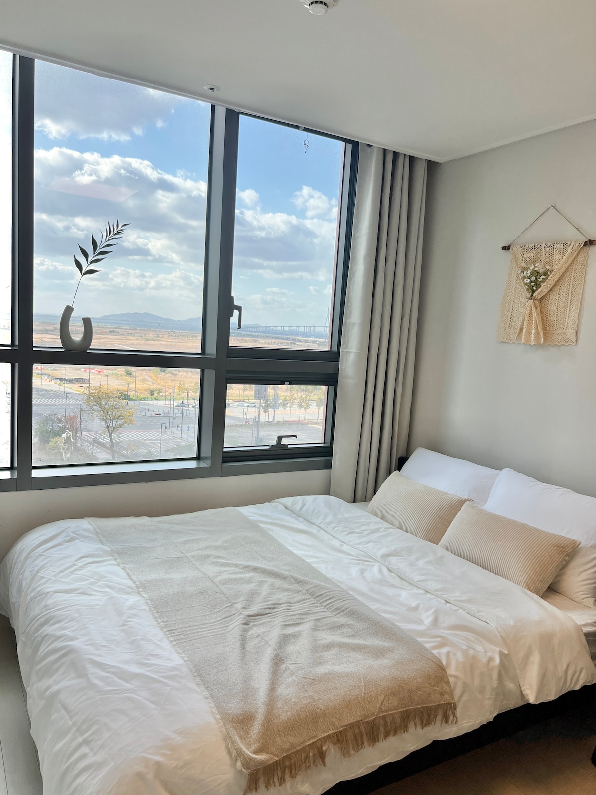 -새 매트리스로 교체하였습니다! -해당 객실에서만 볼수있는 환상적인 인천대교뷰를 보며 힐링을 해보세요. -파노라마 오션&시티뷰로 낮과 밤 모두 아름다운 풍경으로 방에만 있어도 충분히 여행하는 기분을 느낄수있어요. -많은 게스트님들이 후기로 인증해주셨어요. "사진보다 실제로 보니 훨씬 좋아요" "석양이 너무 아름다워요" "야경이 너무 예뻐요" "호텔보다도 좋아요" "시간대 상관없이 창 밖만 봐도 힐링이에요" -호텔식의 넓은 펜트하우스로 소음 걱정 없이 완전한 휴식을 할수있어요. -전문 메이드가 청소하여 청결함은 기본, 호텔 침구에서 편안한 시간을 보내보세요. -인천대교의 아름다운 뷰와 함께하는 행복한 추억을 선사하세요.
