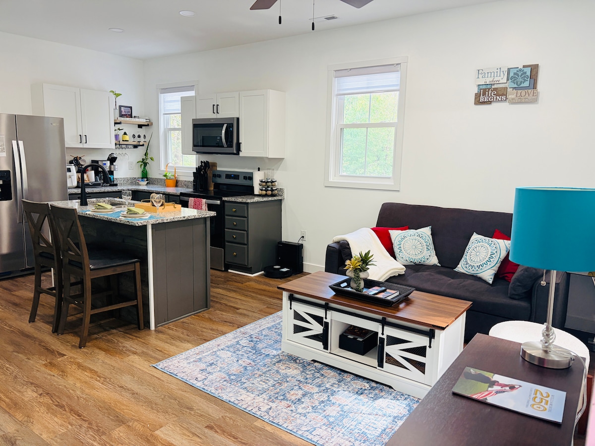 Evadează în această cabană de oaspeți frumos remodelată, concepută pentru o ședere de neuitat. Amplasat într-un cadru liniștit de 6,5 acri, cu vedere privată la pârâu, este la doar câteva minute de cumpărături, fabrici de bere și de luat masa. Trezește-te într-un peisaj uluitor, relaxează-te într-un cadru liniștit și bucură-te de dotări moderne. Relaxează-te lângă groapa de foc sau înmoaie-te în cada cu hidromasaj. Perfect pentru un refugiu romantic sau o escapadă de familie plină de distracție în triunghiul istoric. Confort, farmec și relaxare de neegalat: evadarea ta perfectă te așteaptă!